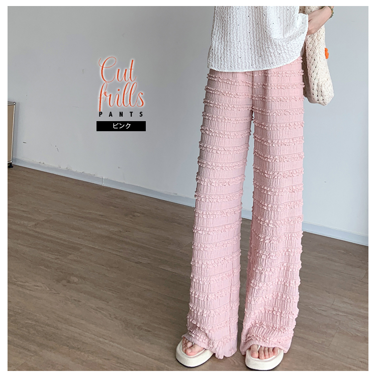 小さめなフリルのシアーなフリルカットワイドパンツ。