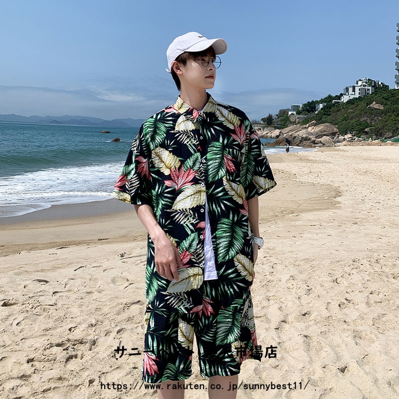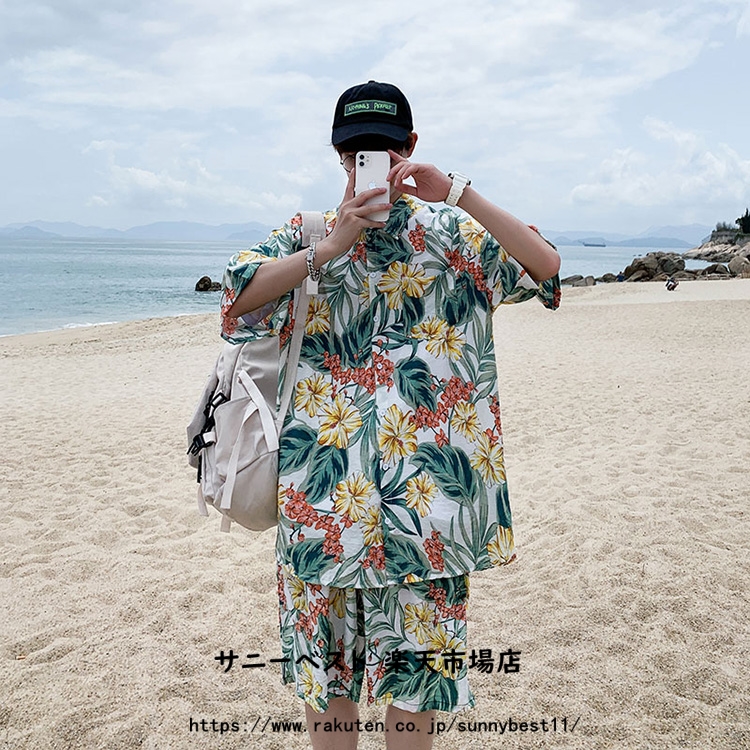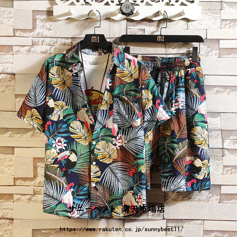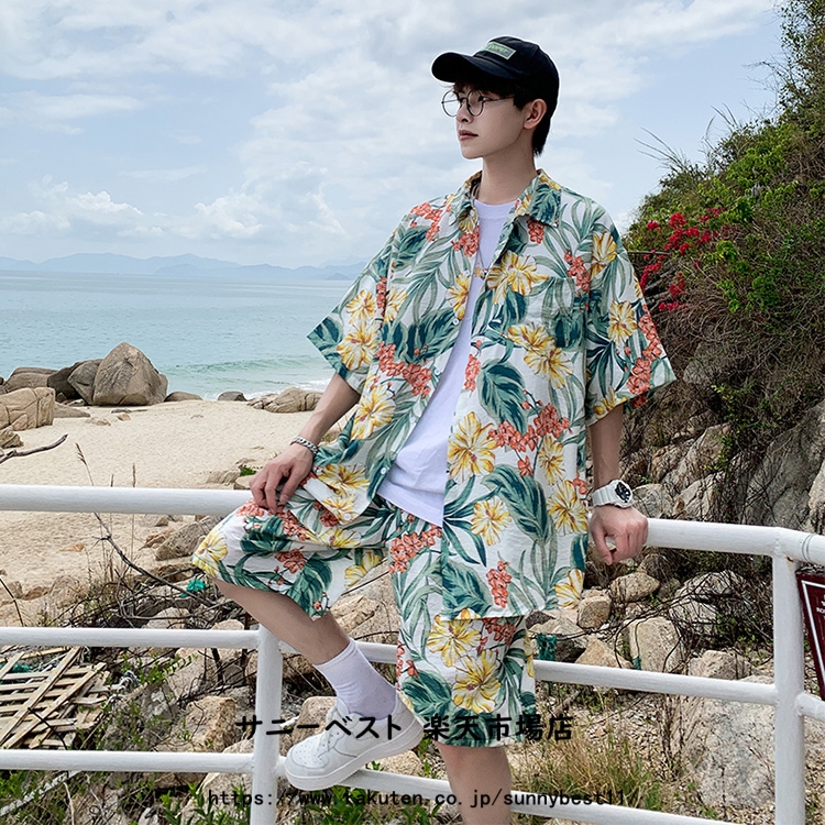 半袖 花柄 アロハシャツ メンズ 上下
