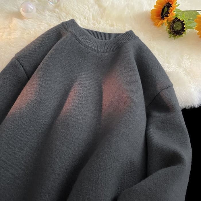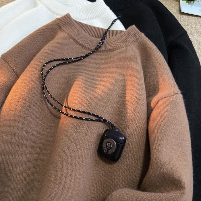 ニット メンズ ラウンドネック 裏起毛