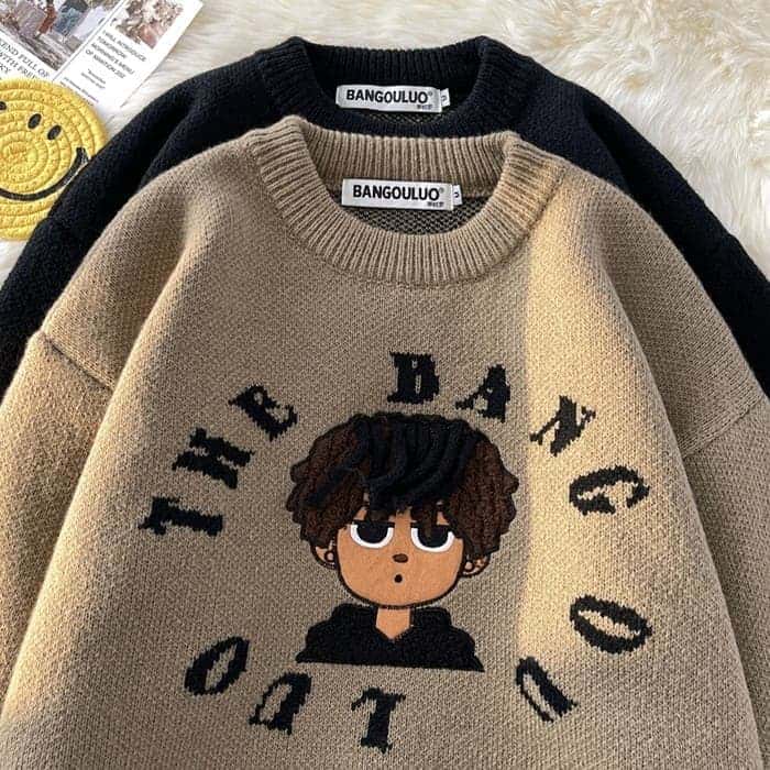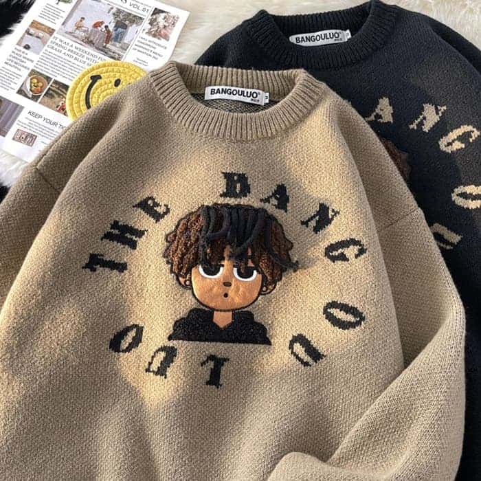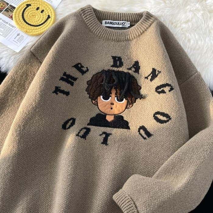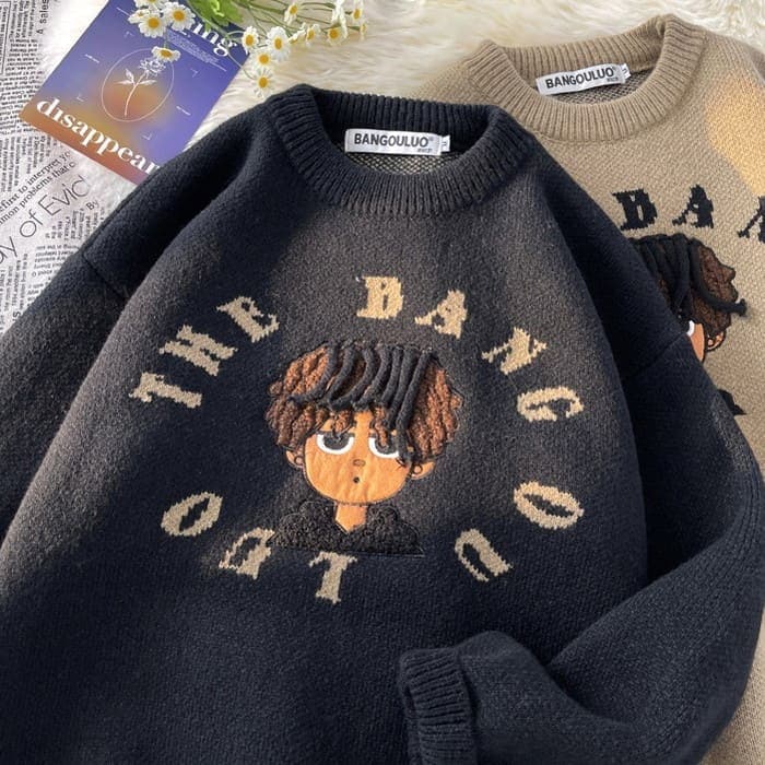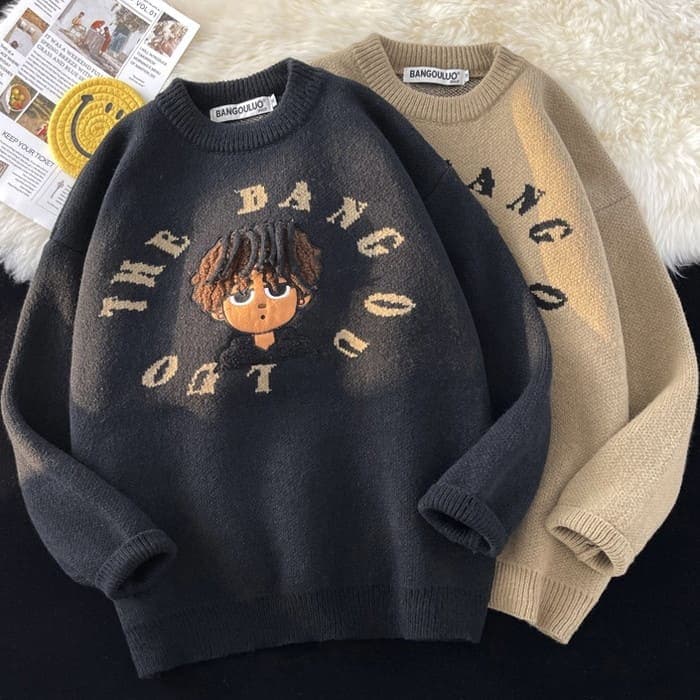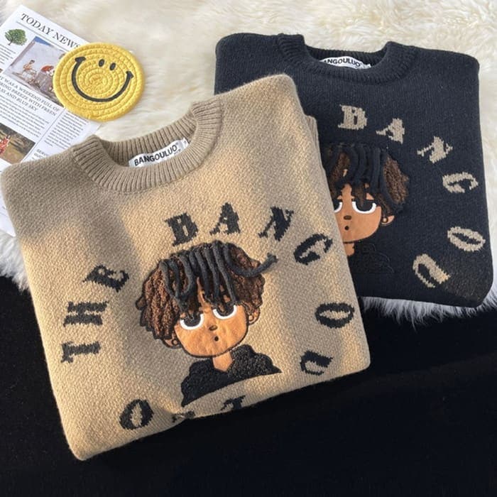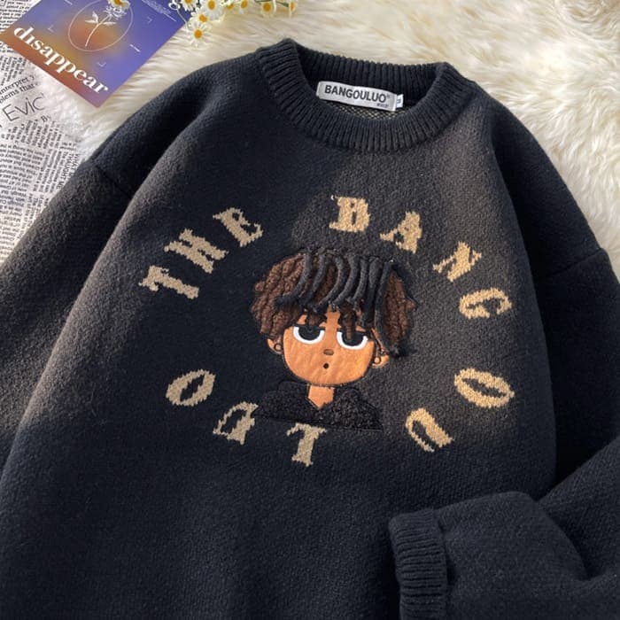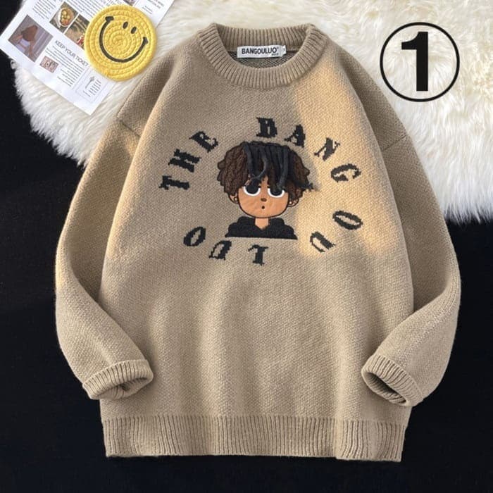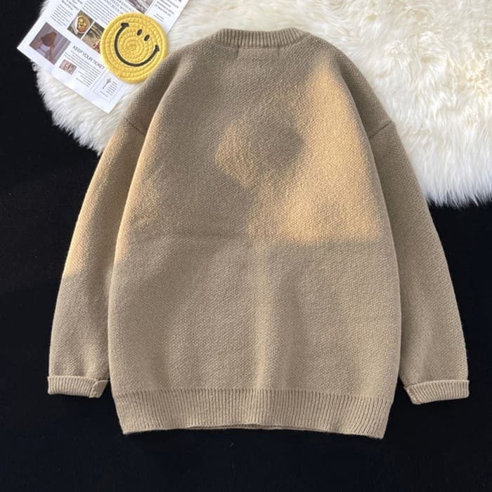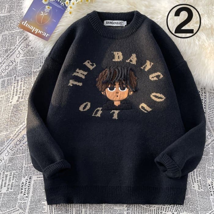 ロゴ 刺繍ニット メンズ 春秋冬 長袖