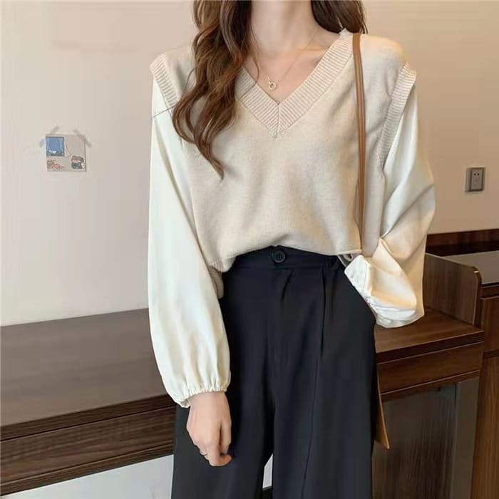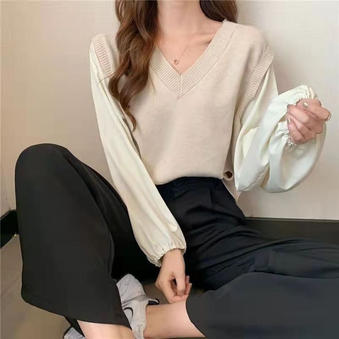 シアースリーブ ドッキングシャツ ボウタイシャツブラウス