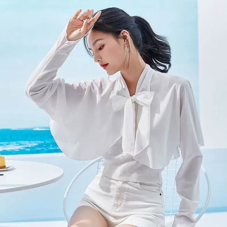 シアースリーブ ドッキングシャツ ボウタイシャツブラウス