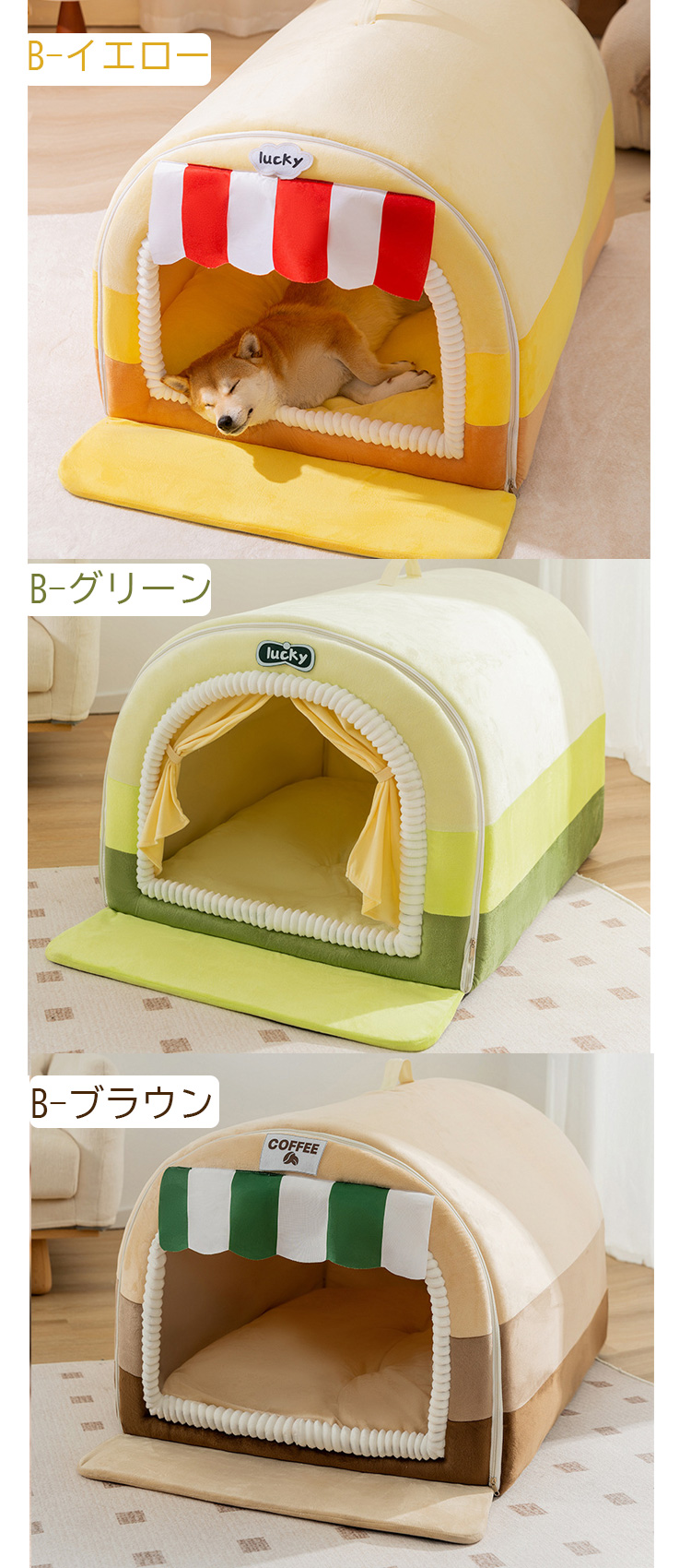 色: A-イエロー A-グレー A-パーブル B-イエロー B-グリーン B-ブラウン C-ブラウン C-グリーン C-グレー