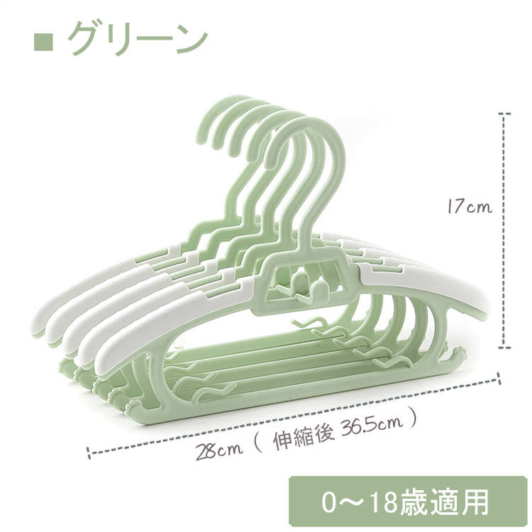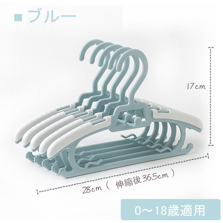 子供用ハンガーなので、子供服の型崩れ防止になり、サイズに合わせてハンガーの肩を伸縮調整してピッタリサイズ。