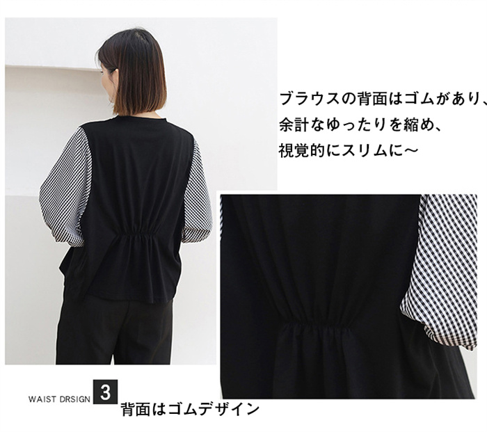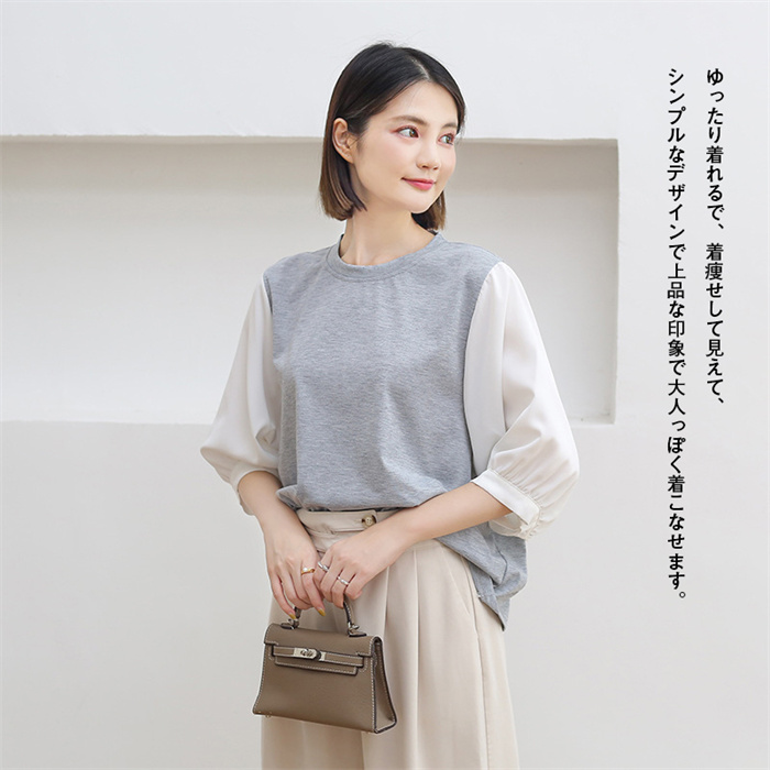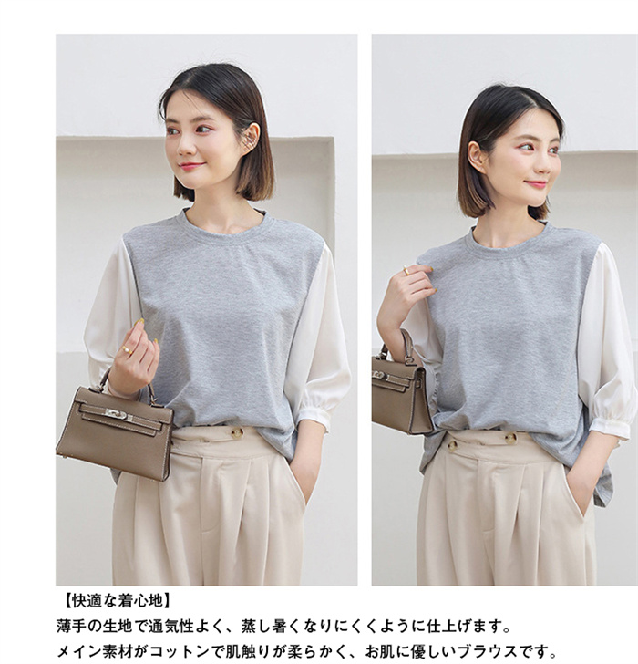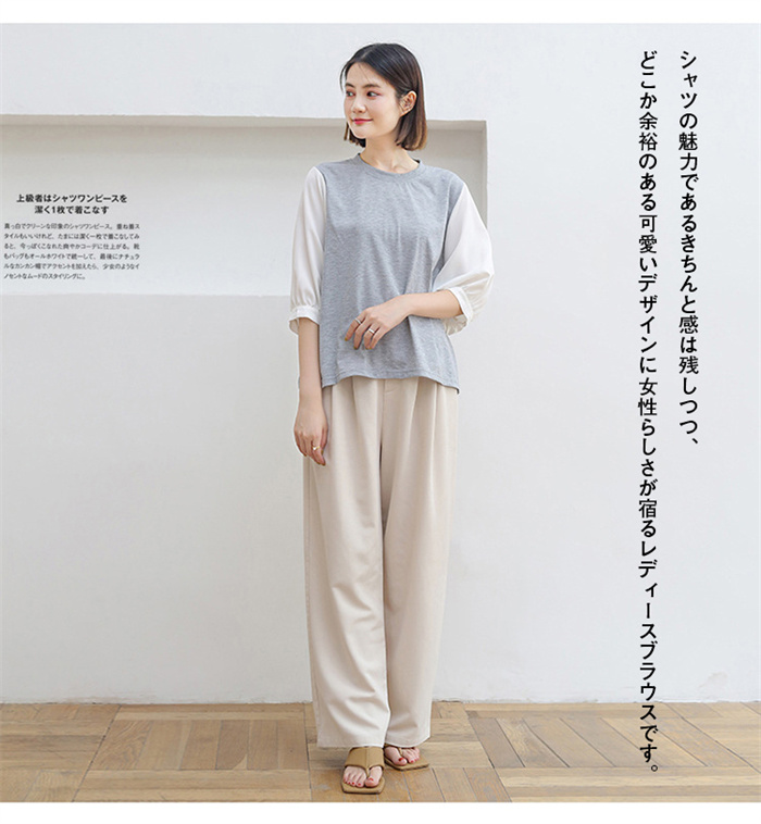 シアースリーブ ドッキングシャツ ボウタイシャツブラウス