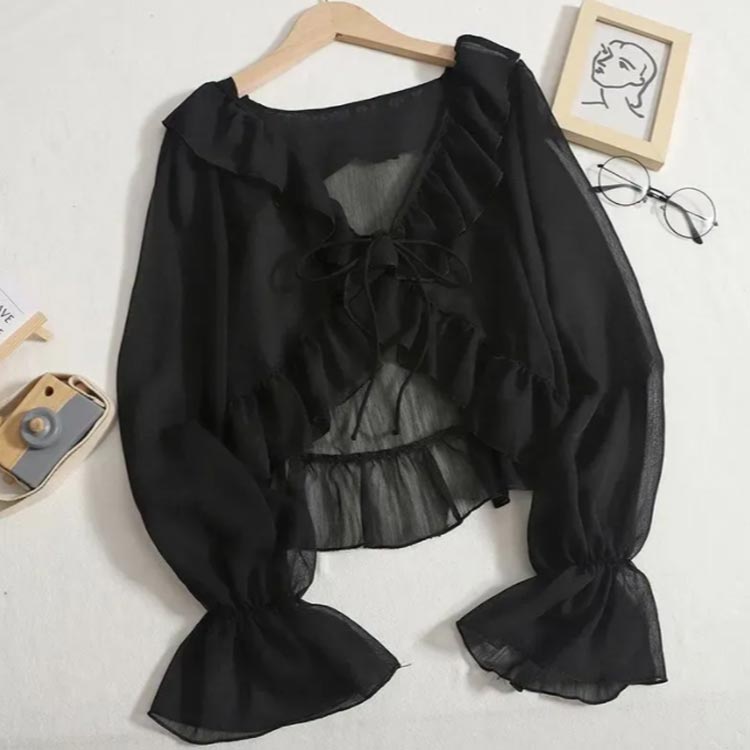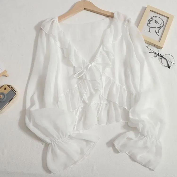シアースリーブ ドッキングシャツ ボウタイシャツブラウス