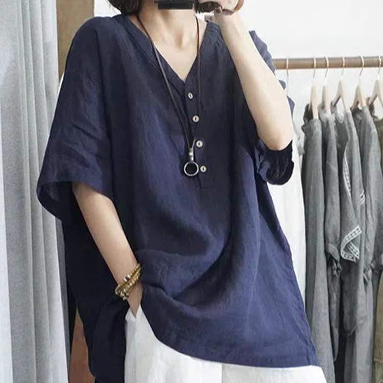 Tシャツ 夏前開き 綿麻 コットンリネ