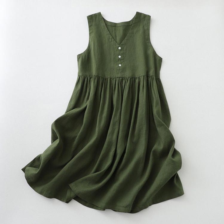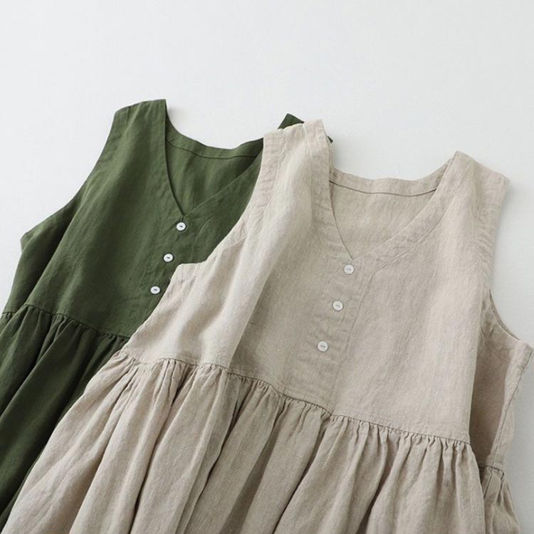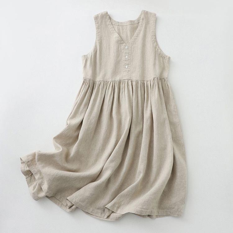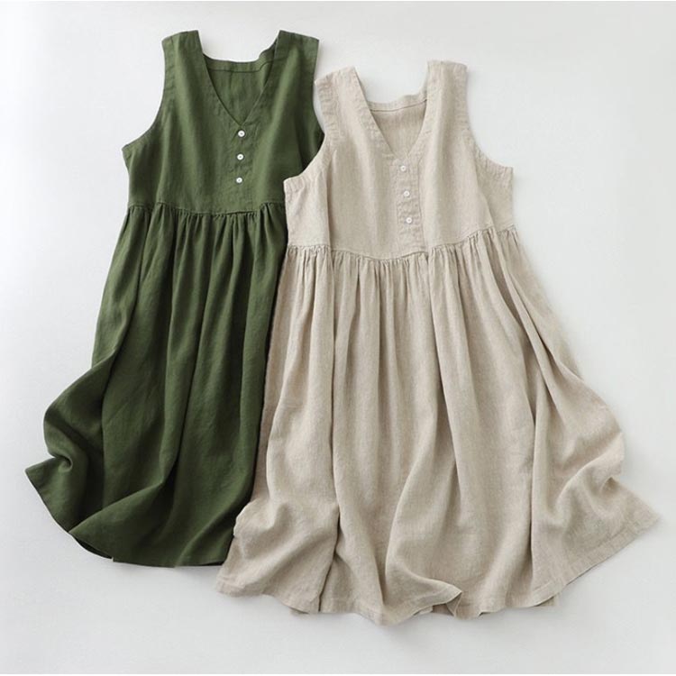 リネン ノースリーブワンピース ウエス