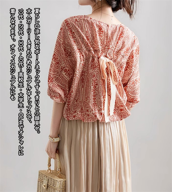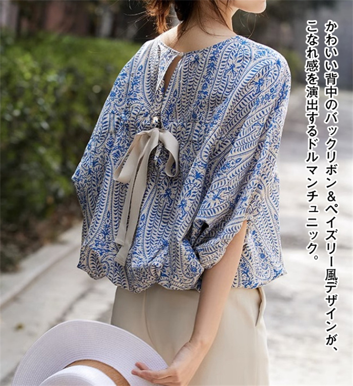 ドルマン 半袖 リボン チュニック ト
