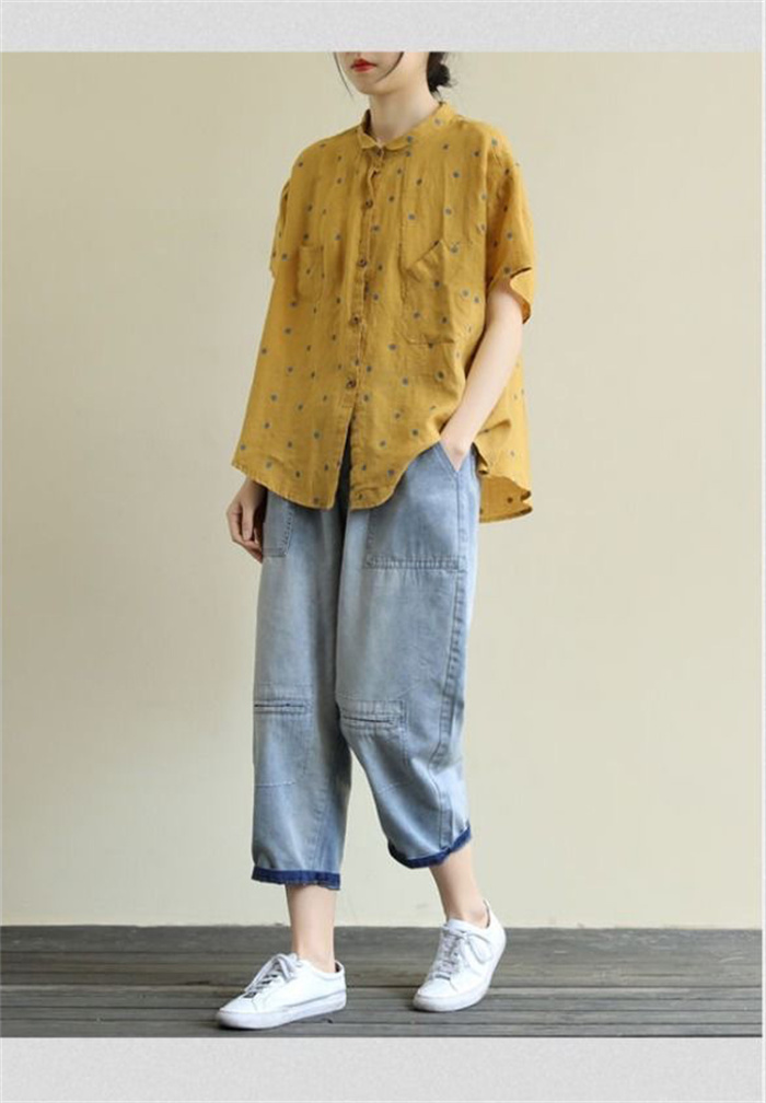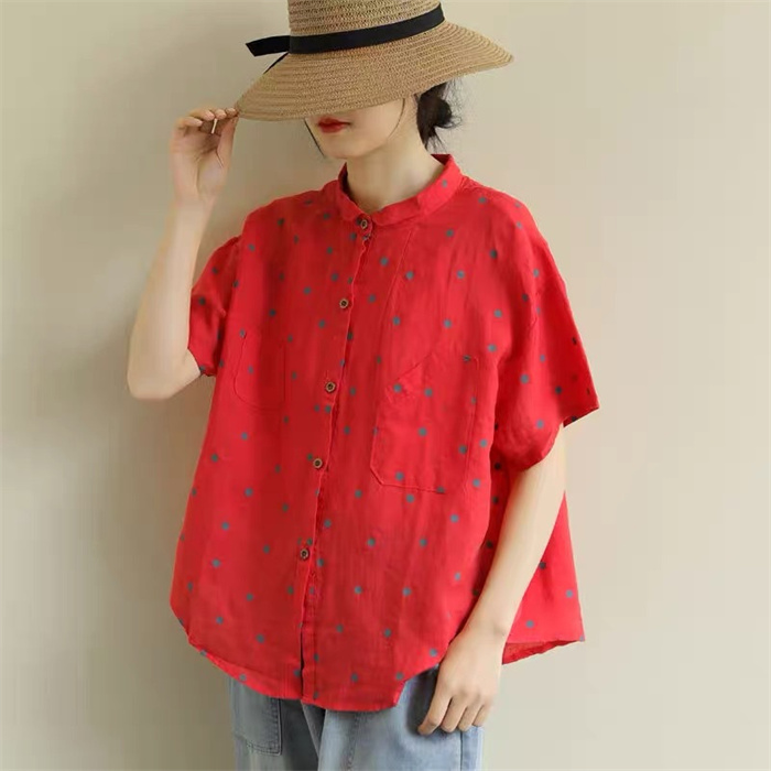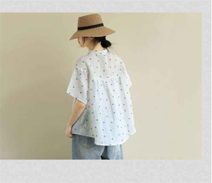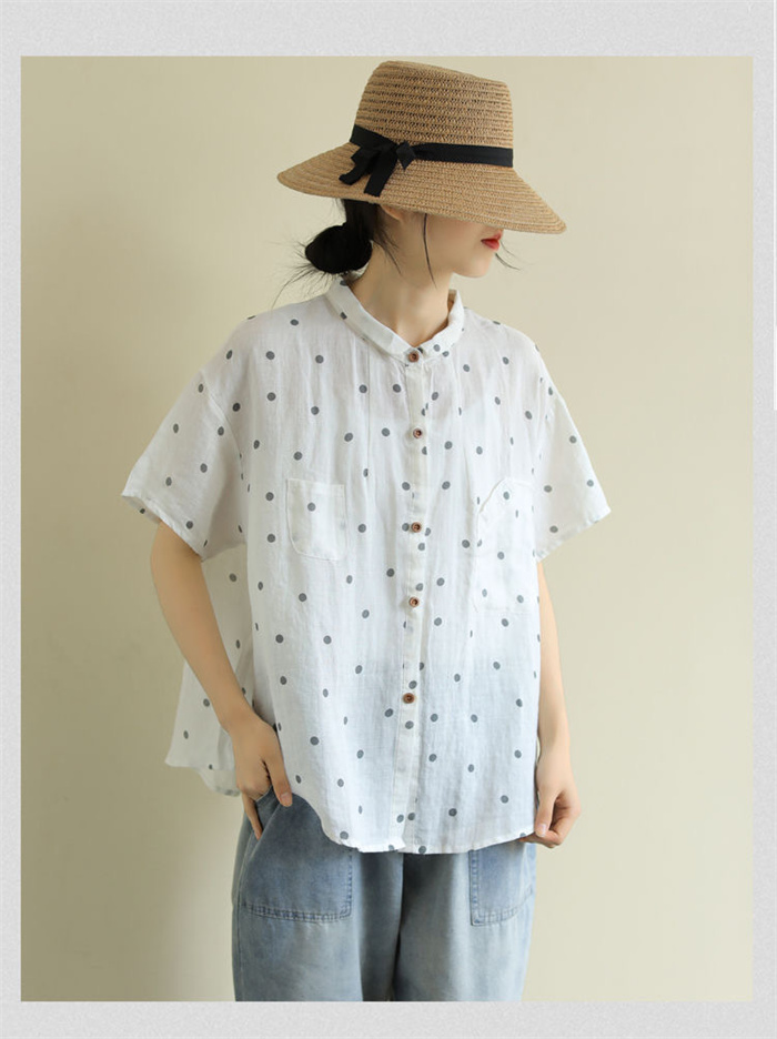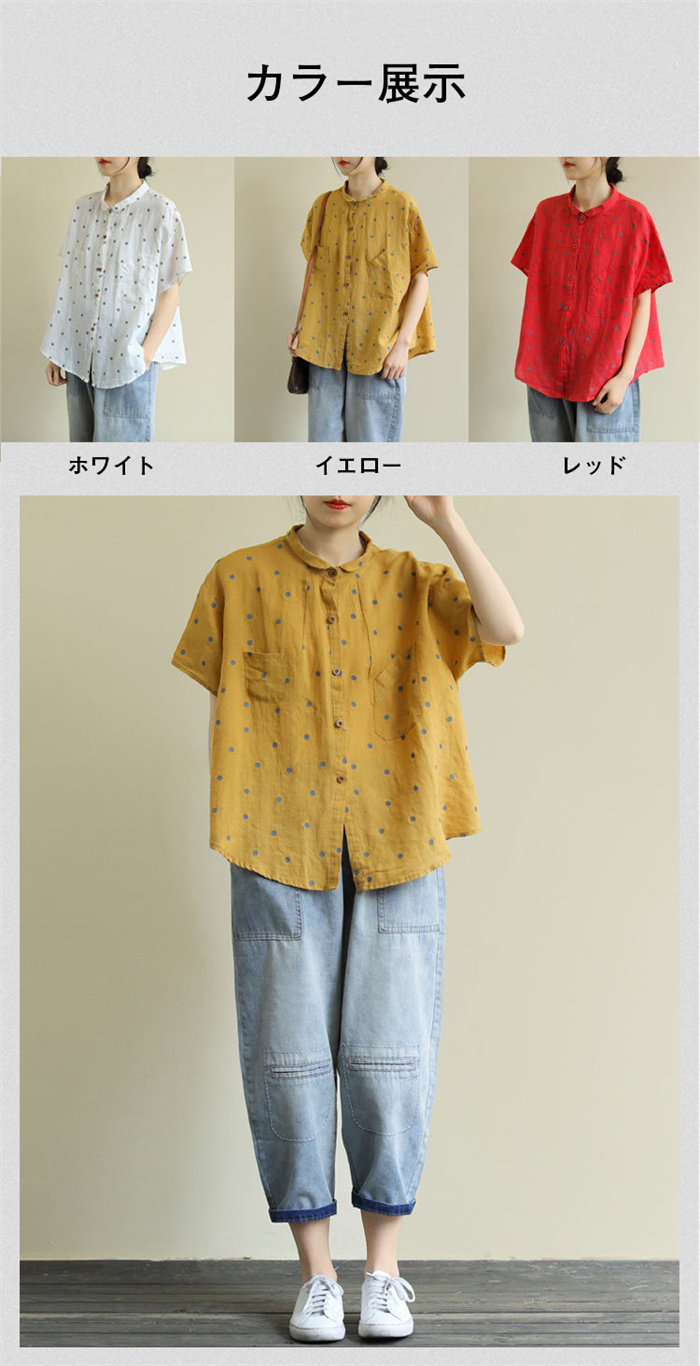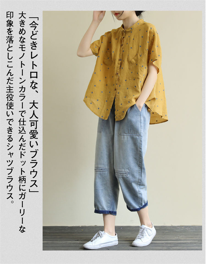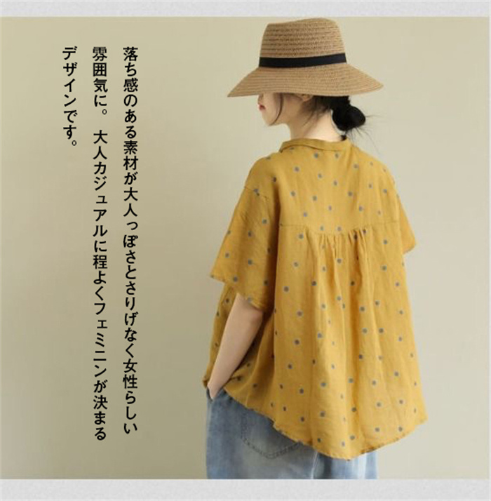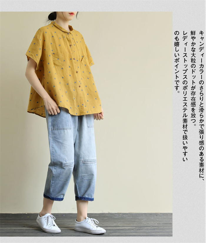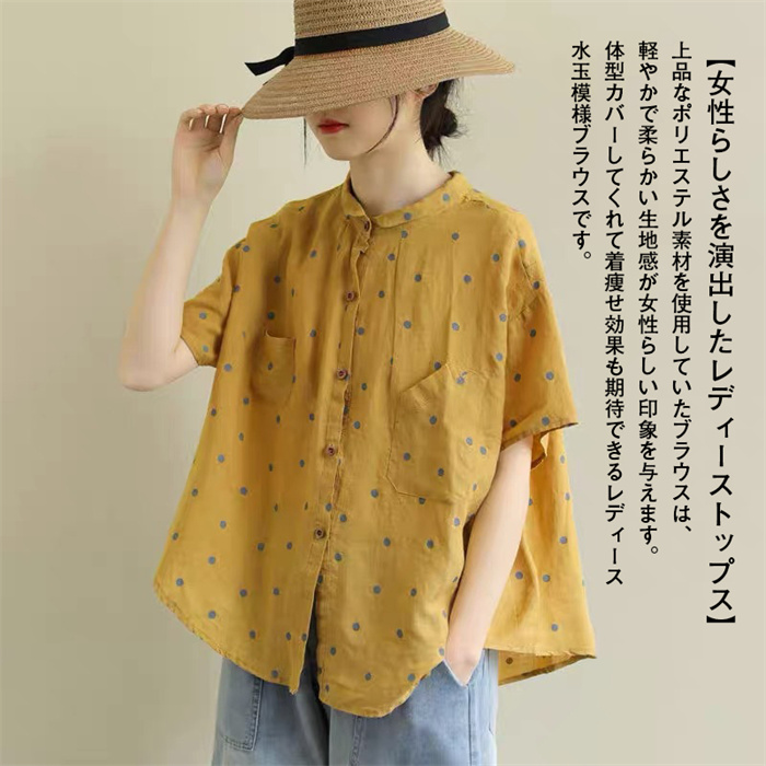 レディース 半袖 ブラウス ドット柄
