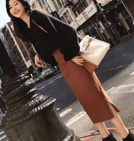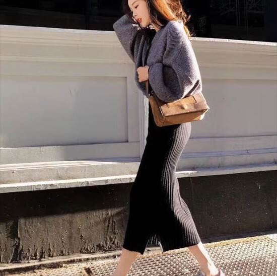 シンプルなデザインでありながら、ハイウエストのデザインで体型カバーも叶えます。袖ありの長袖トップスとスカートがセットになっており、着回し力も抜群です。