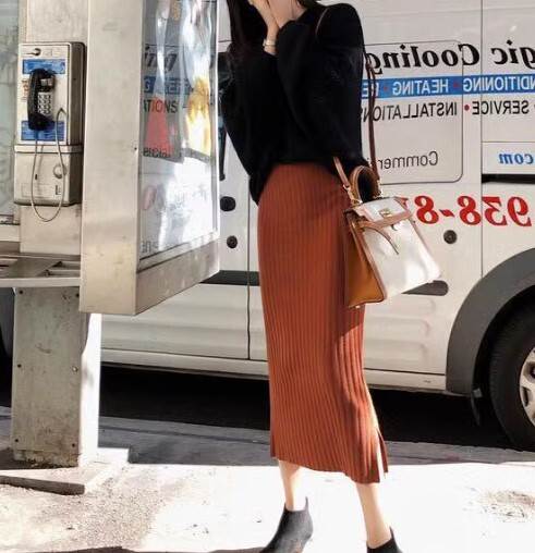 セットアップ プルオーバー タイトスカート ニットスカート トップス スカート ボトムス ミモレ丈 袖あり 長袖 ボリューム袖 萌袖 ランタンスリーブ Vネック スリム ハイウエスト かわいい きれいめ シンプル カジュアル 大人可愛い 大人女子 フレンチ ハイエンド 無地 秋 冬 レディース お出かけ 休日 リゾート 旅行 着回し 体系カバー サイズ S M L XL 色展開 ブラック(トップス)オレンジ(スカート) グレー(トップス)ブラック(スカート) アプリコット(トップス)オレンジ(スカート)
