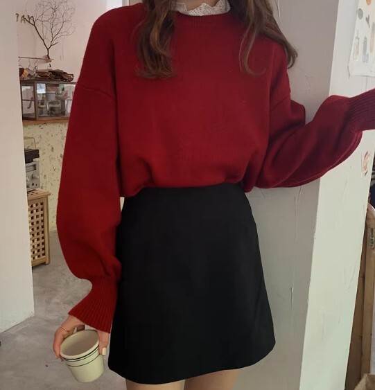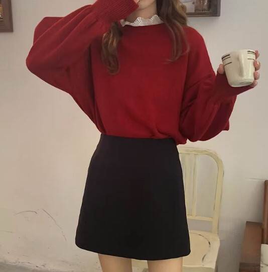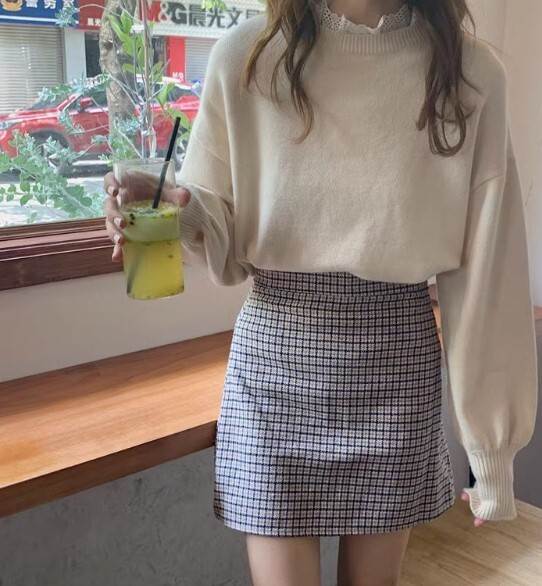 レッドのスカートは、ブラック無地との組み合わせで大人っぽい印象。アプリコットのスカートは、チェック柄との相性が良く、可愛らしさもプラスされます。