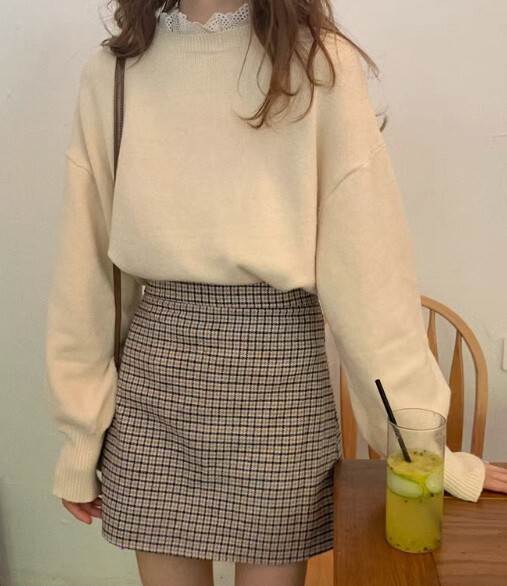 トップス セーター プルオーバー ツーピース レースエッジ襟 スタンドカラー 長袖 萌袖 レギュラー丈 ボトムス スカート ミニスカート ショート丈 通勤 通学 OL かわいい きれいめ