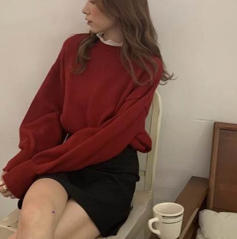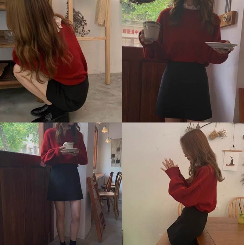 トップス セーター プルオーバー ツーピース レースエッジ襟 スタンドカラー 長袖 萌袖 レギュラー丈 ボトムス スカート ミニスカート ショート丈 通勤 通学 OL かわいい きれいめ シンプル カジュアル 上品 おしゃれ かっこいい 大人可愛い 大人女子 クール エレガント モダン 主役級 フレンチ レディース デート 休日 リゾート 旅行 着回し 普段使い 体系カバー トレンド インスタ映え サイズ S M L XL 色展開 レッド(スカート ブラック無地) アプリコット(スカート チェック柄)