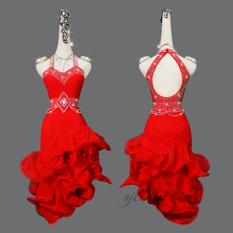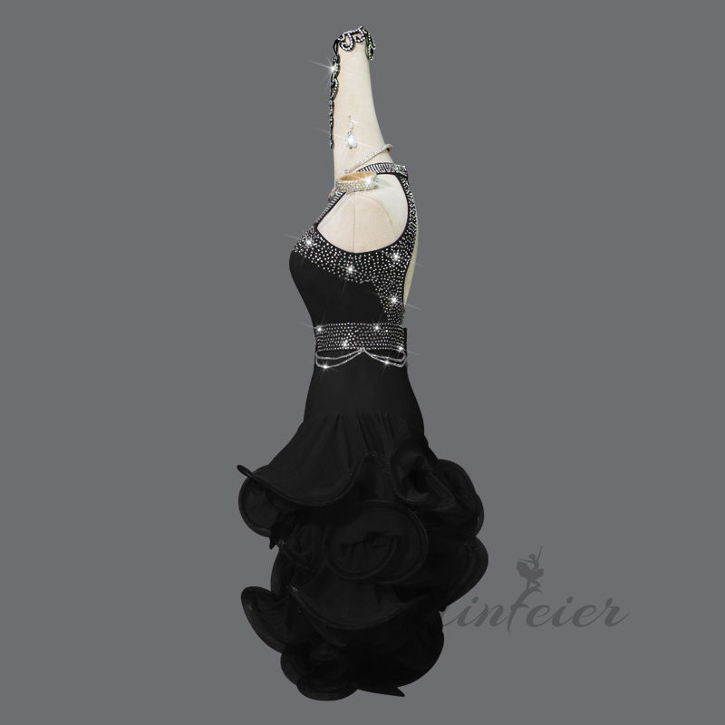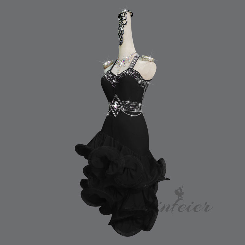 この豪華なラテンダンスドレスで、あなたのダンスを次のレベルへと導きましょう。舞台上での存在感を放つこのドレスは、観客の目を釘付けにすること間違いなしです。