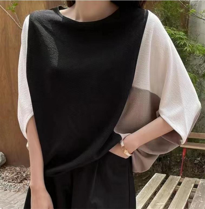 シアースリーブ ドッキングシャツ ボウタイシャツブラウス