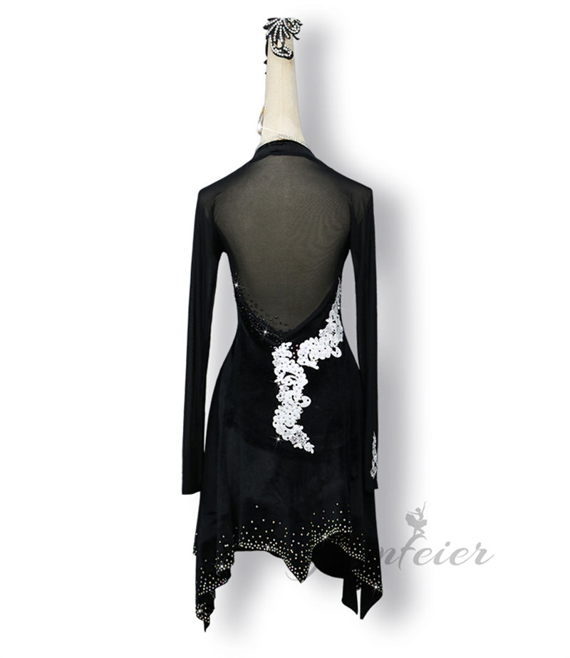 伸縮性のある生地を使用し程よくフィットし、ダンスの動きを妨げず、美しいシルエットを保つ。