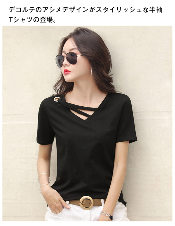 Tシャツ レディース 半袖 vネック