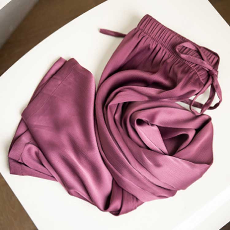 ハイウエスト パンツサテンワイドパンツ