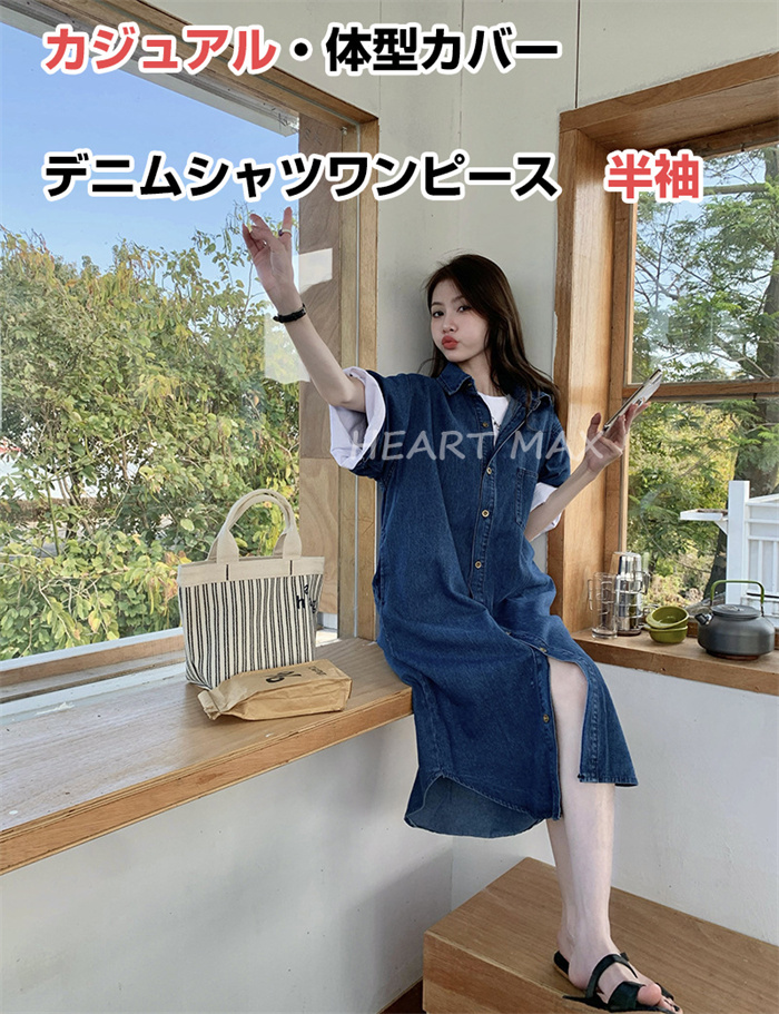デニムシャツワンピース レディース デ