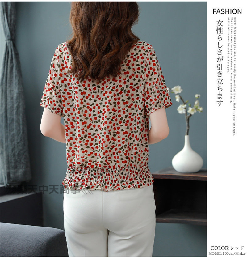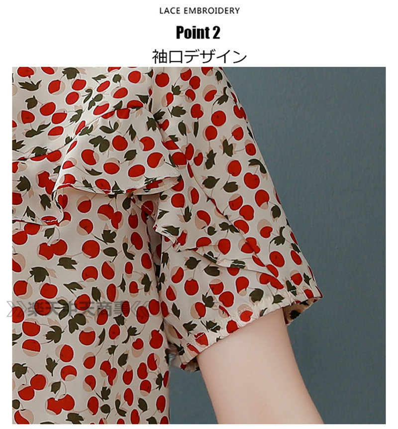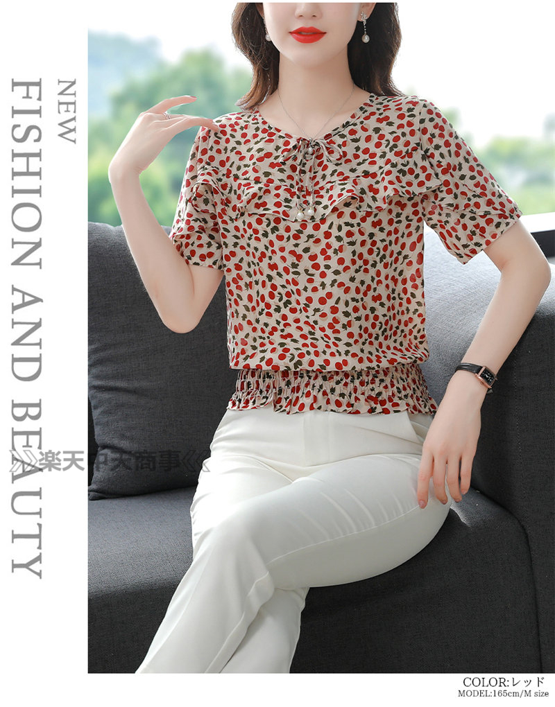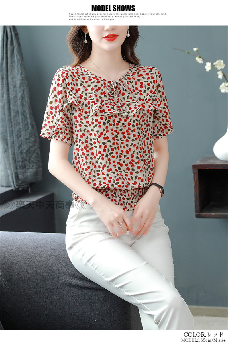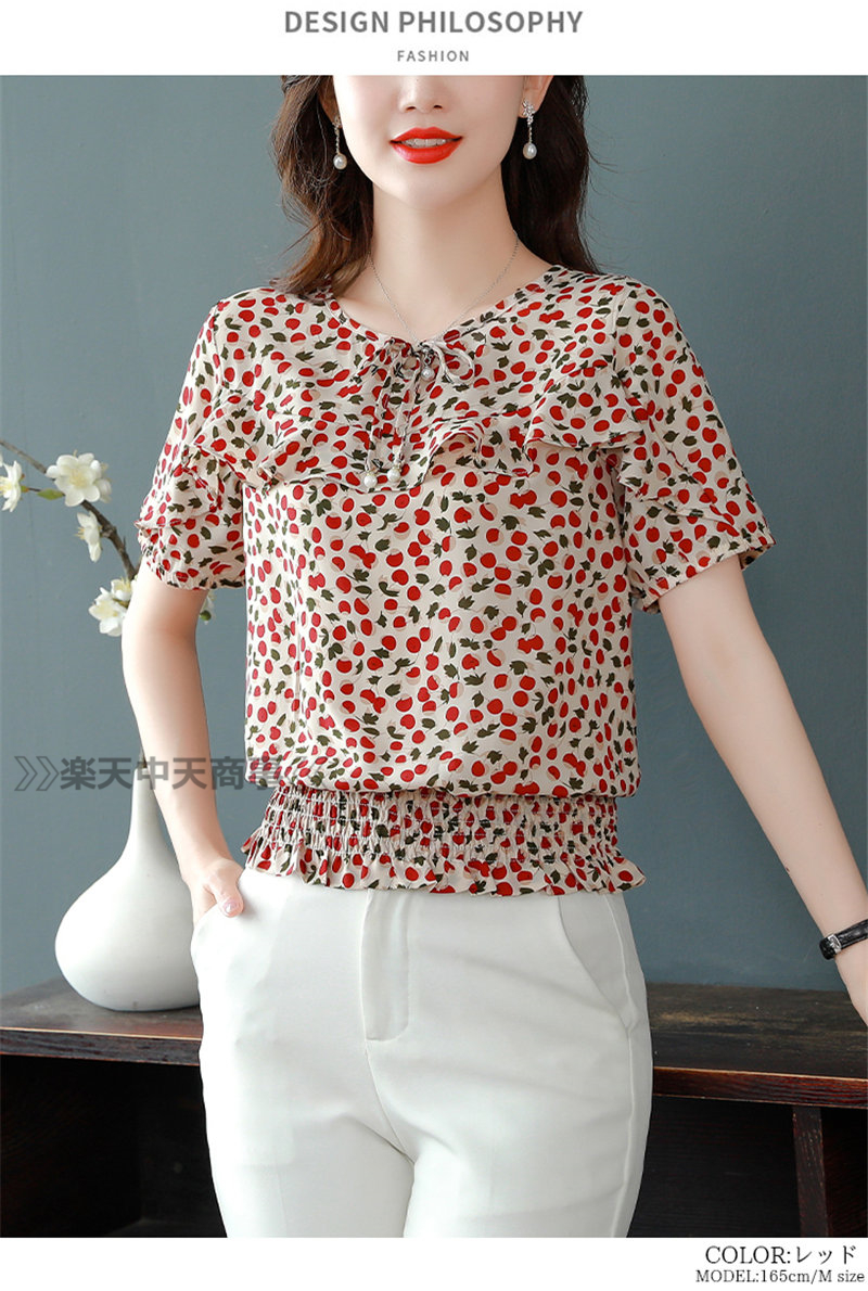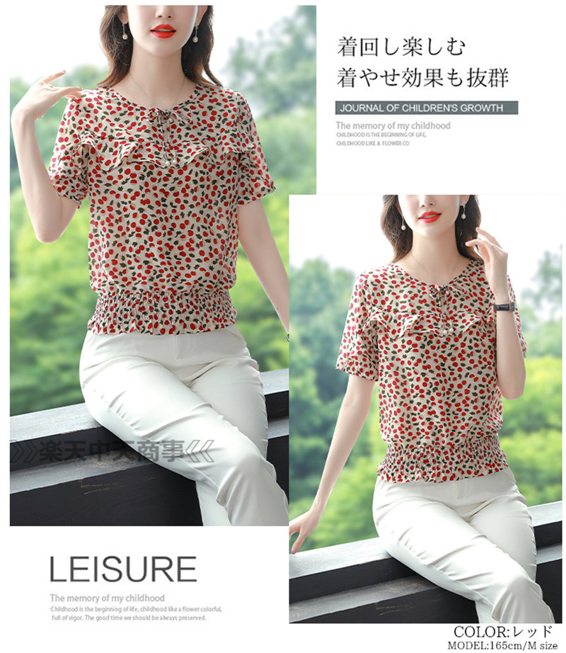 ブラック レッド Cherry柄 夏服 夏物半袖 涼しい Tシャツ 体型カバーレディースファッション トップス Tシャツ カットソー