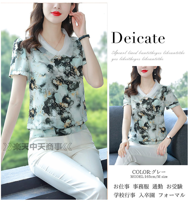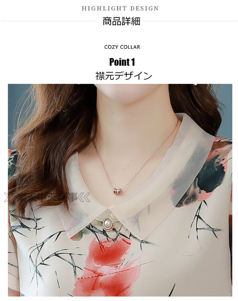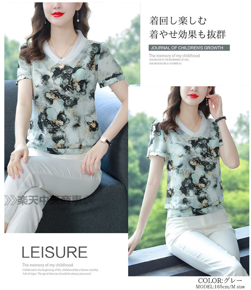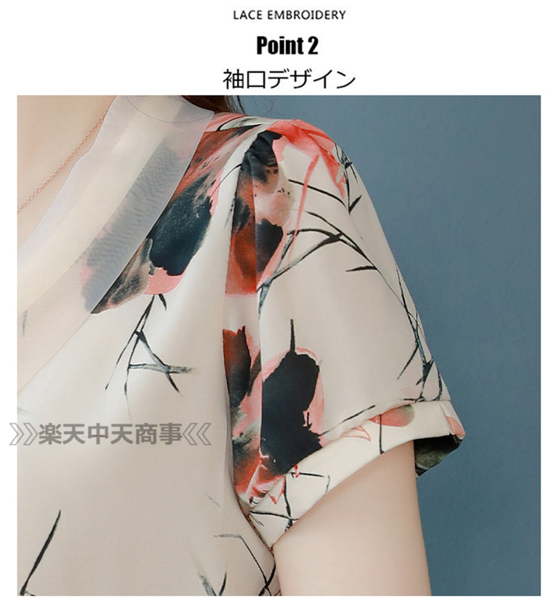 レッドシャツ 花 植物シャツ 半袖トップス Vネックシャツ半袖 涼しい Tシャツ 体型カバーレディースファッション トップス Tシャツ カットソー