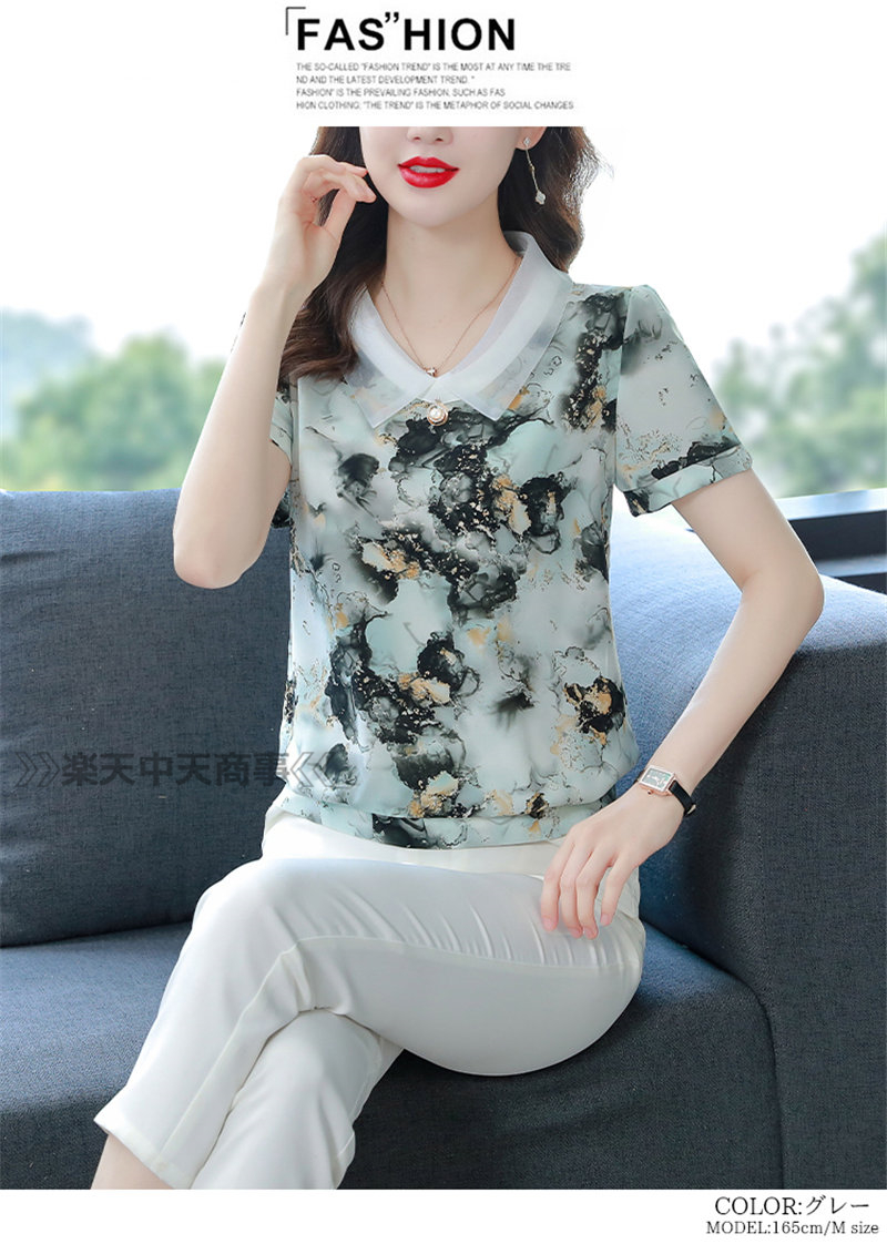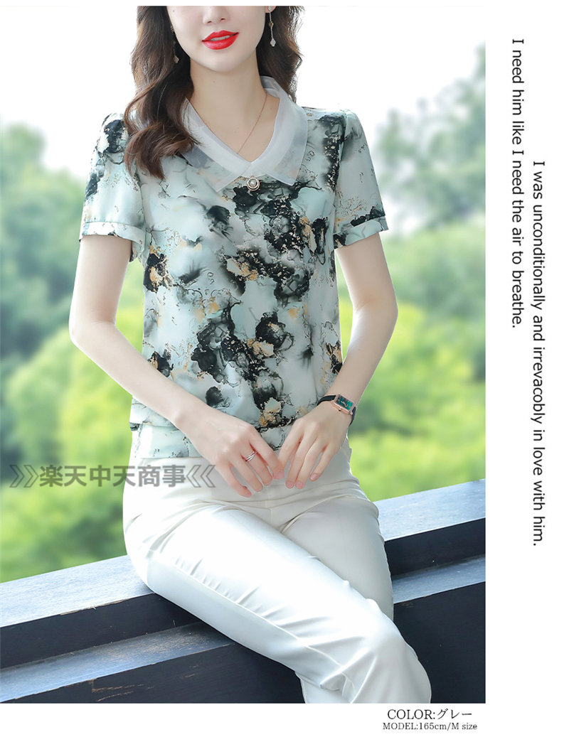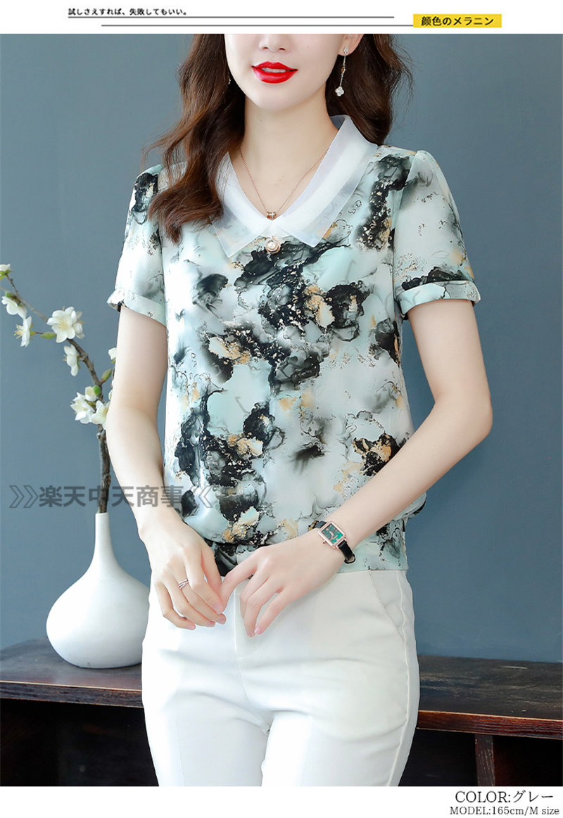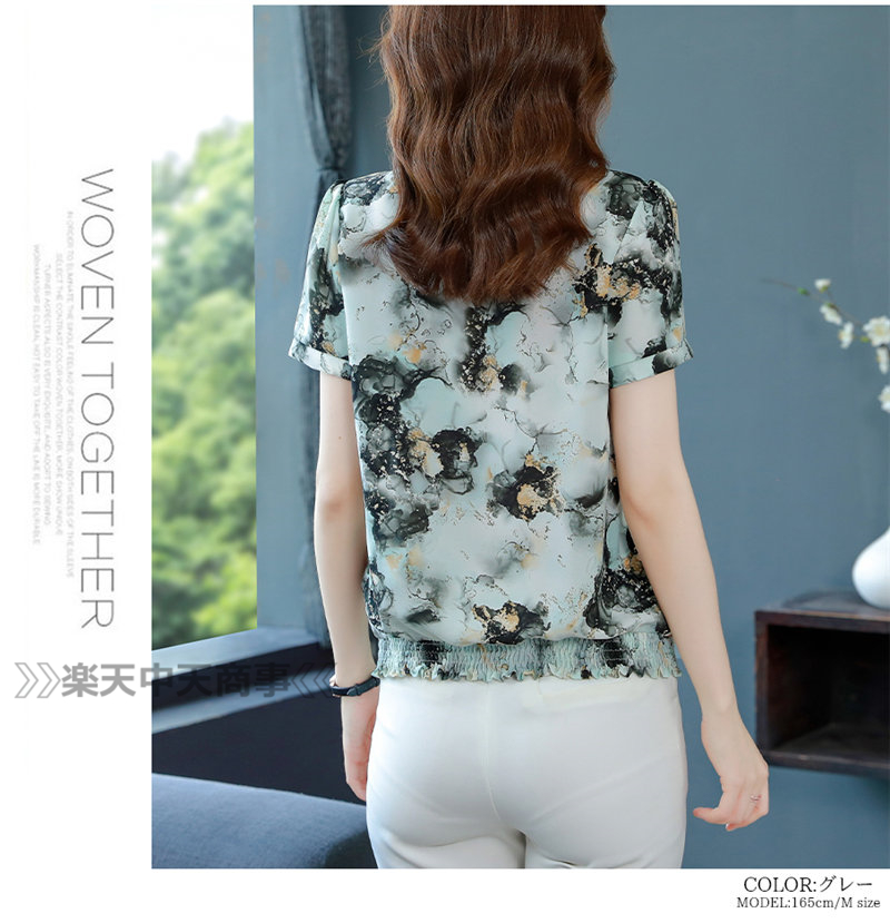 レッドシャツ 花 植物シャツ 半袖トップス Vネックシャツ半袖 涼しい Tシャツ 体型カバーレディースファッション トップス Tシャツ カットソー