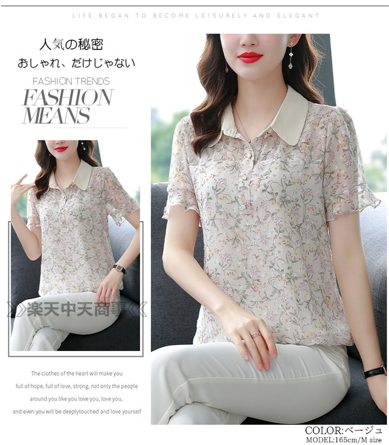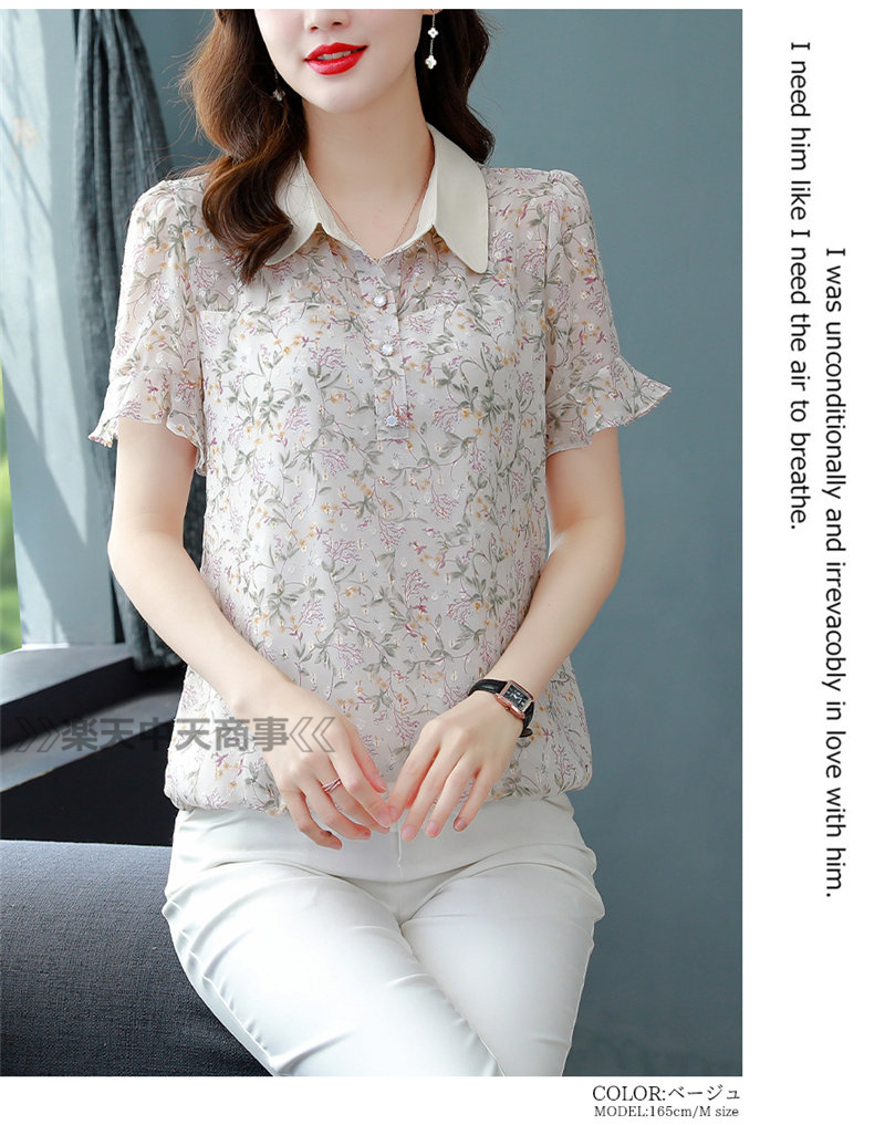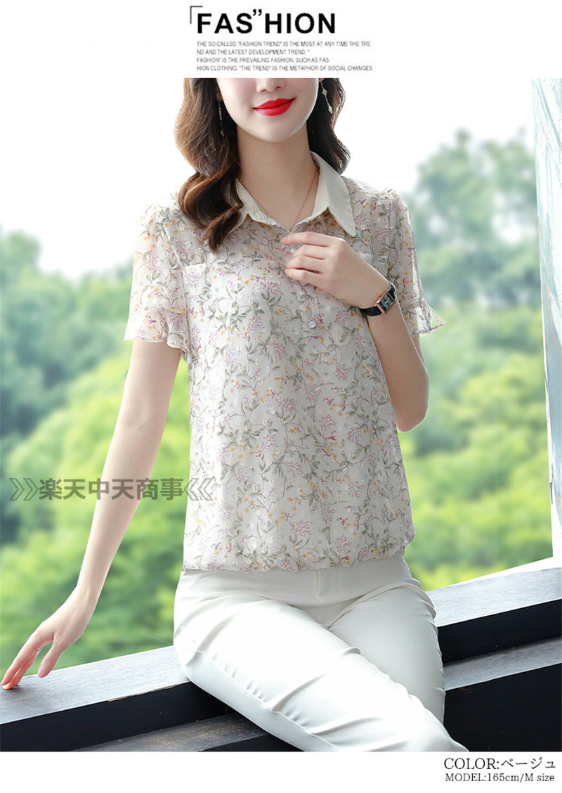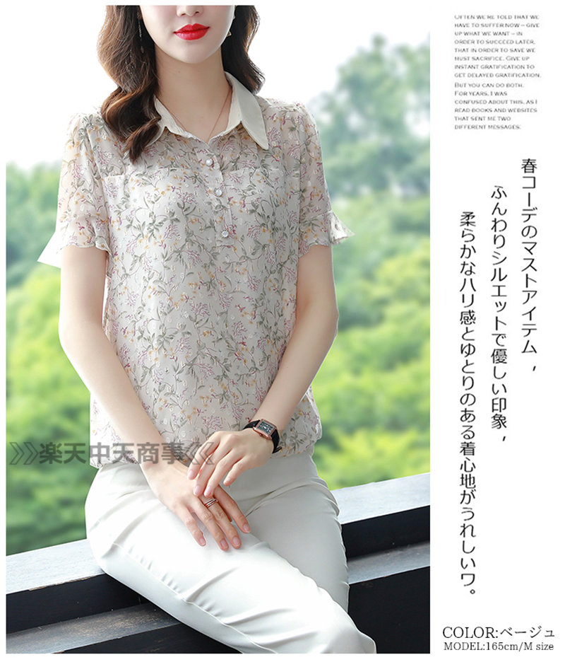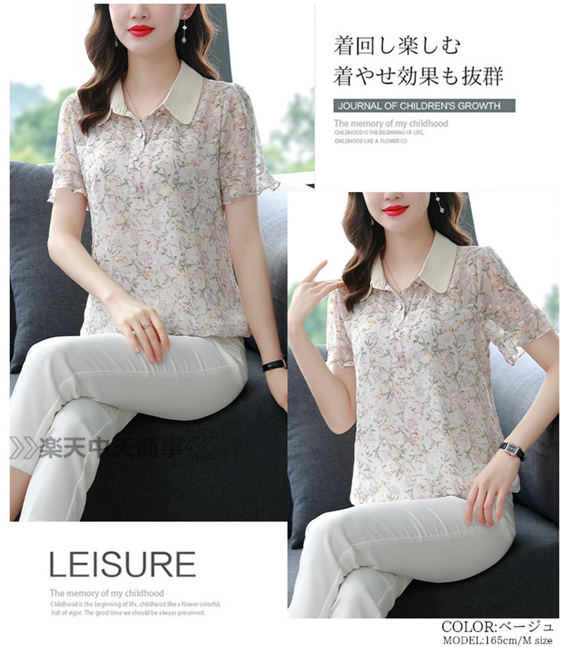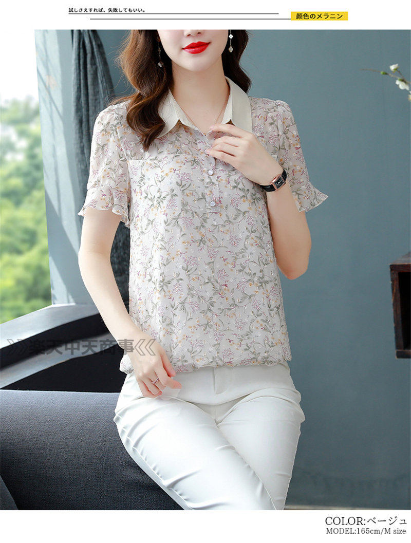 花 植物シャツ 半袖トップス Vネックシャツ半袖 涼しい Tシャツ 体型カバーレディースファッション トップス Tシャツ カットソー