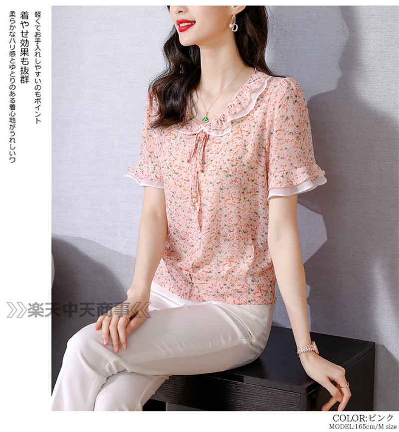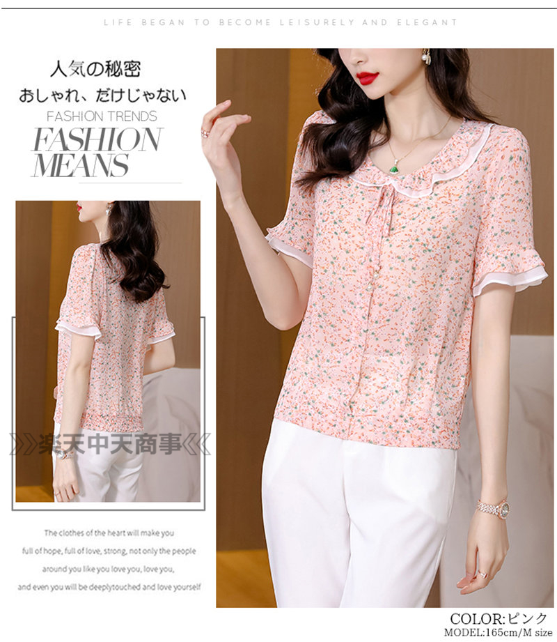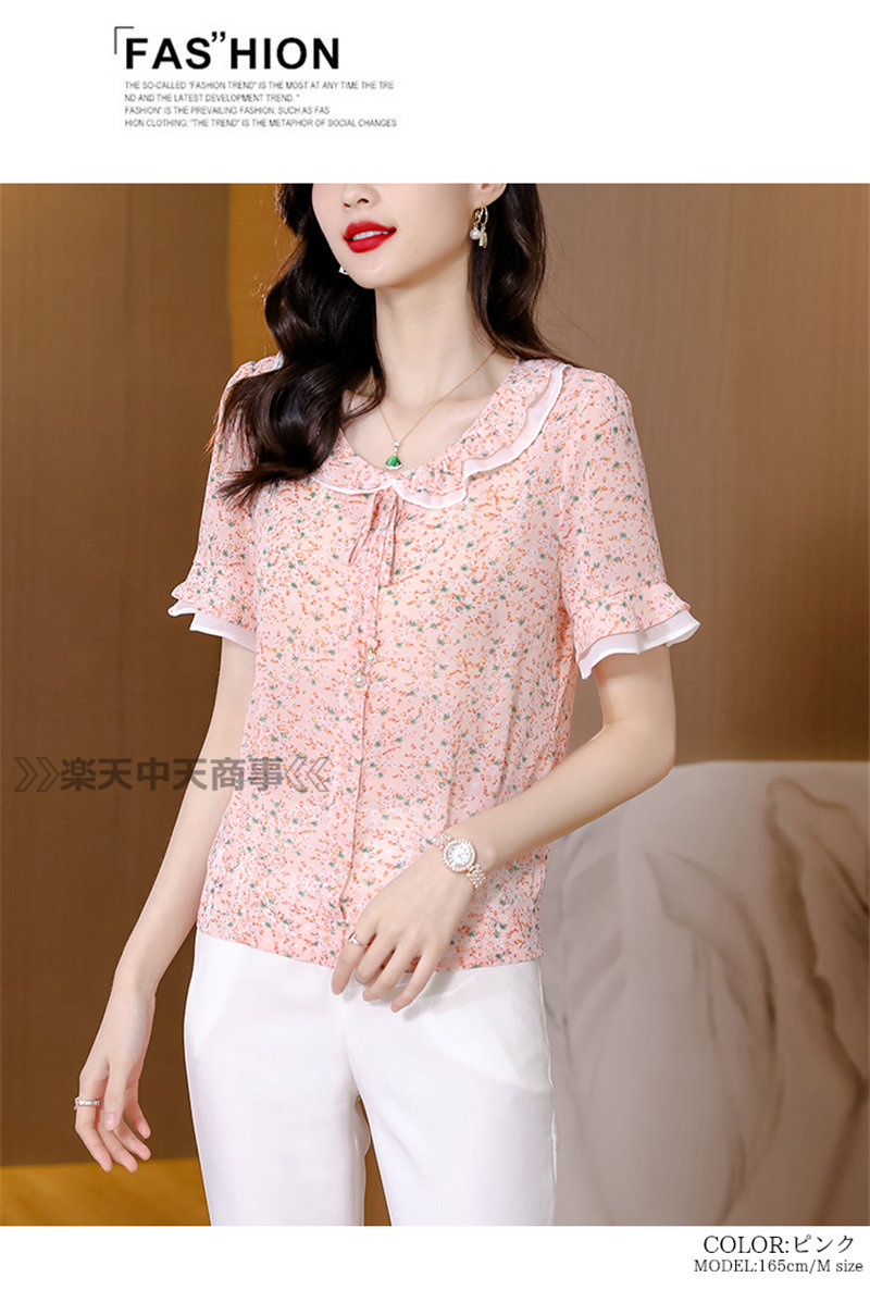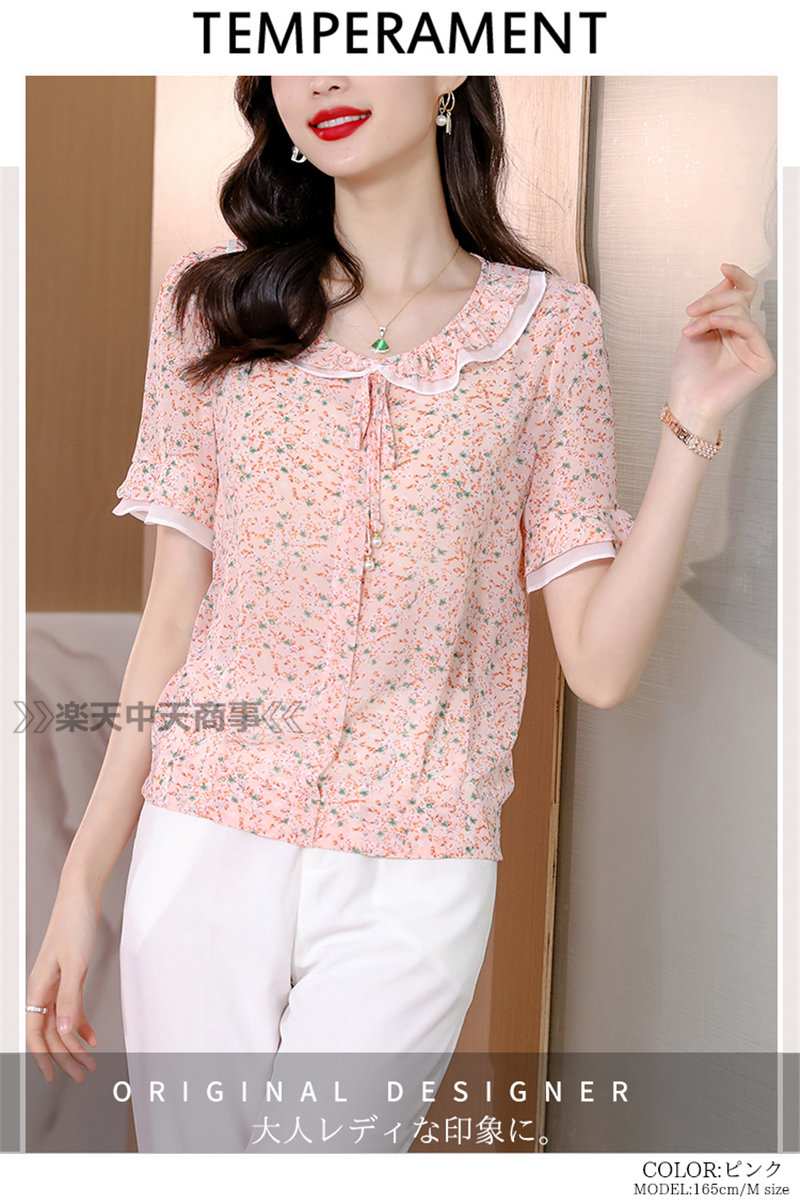 花 植物シャツ 半袖トップスラウンドネックシャツ半袖 涼しい Tシャツ 体型カバーレディースファッション トップス Tシャツ カットソー