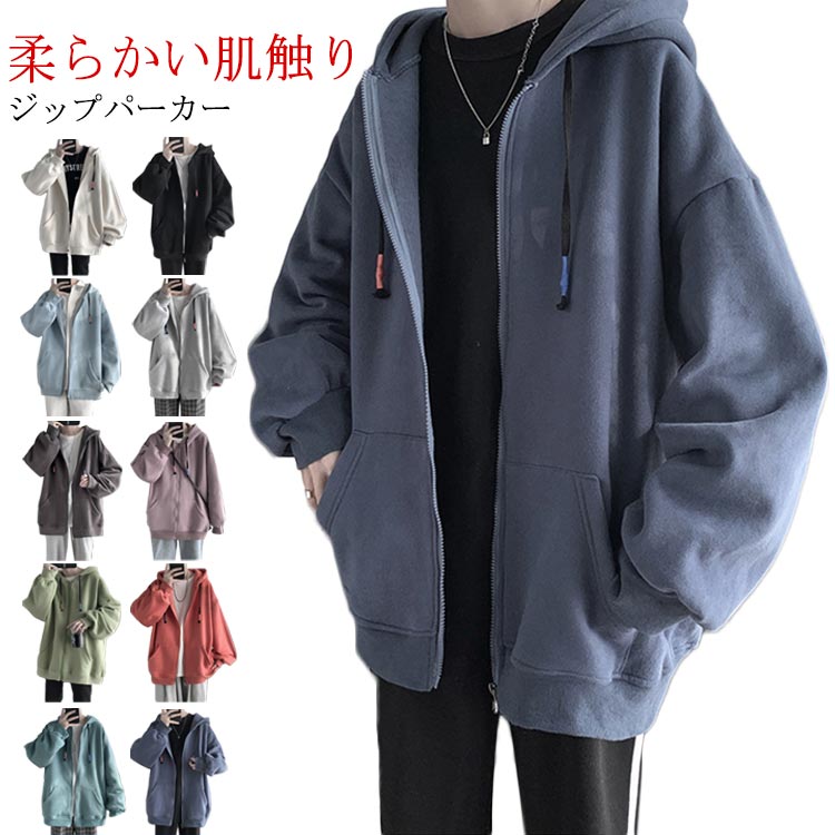 ジップ パーカー メンズ 秋服 オーバーサイズ 大きいサイズ トップス 春秋 冬 ポケット付き ジップパーカー