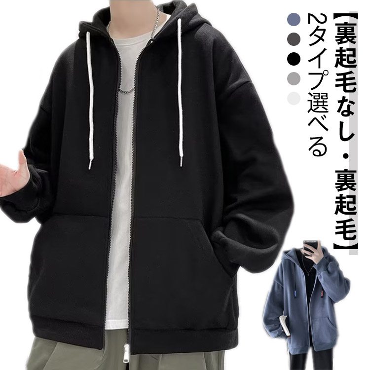 ジップ パーカー メンズ 秋服 オーバー 春服 冬服 レディース パーカー 無地 フード付き ポケット付き 薄手 厚手