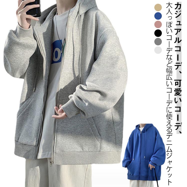 ジップ パーカー メンズ 秋服 オーバー 春服 冬服 レディース パーカー 無地 フード付き ポケット付き
