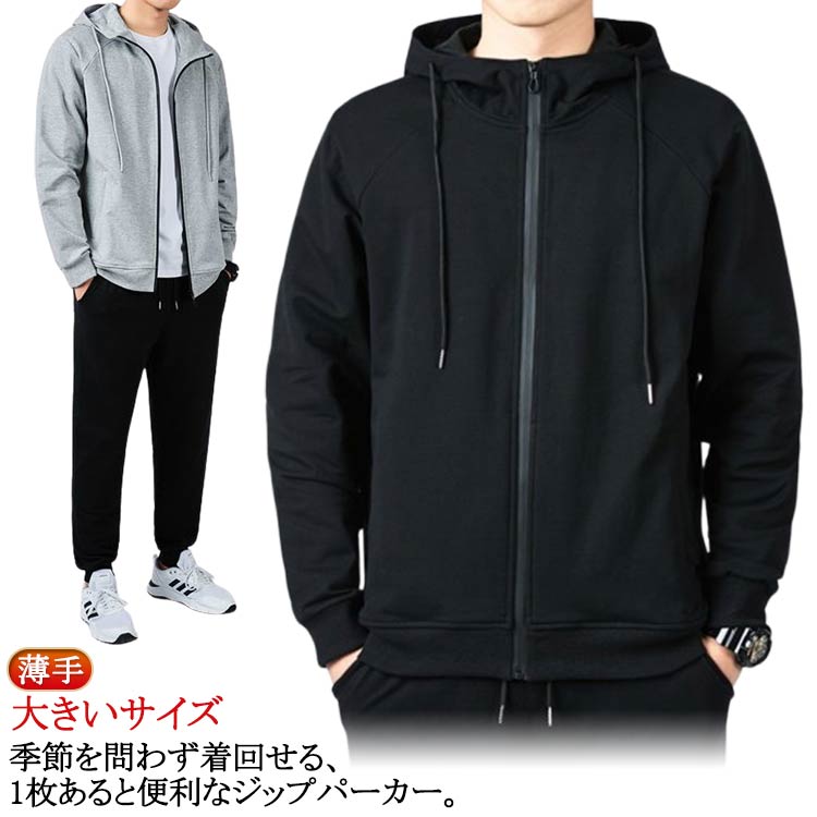 パーカー メンズ 薄手 春秋 ジップパーカー フルジップ スウェットパーカー 綿 コットン ジップアップパーカー ゆったり おしゃれ スポーツ グレー ブラック
