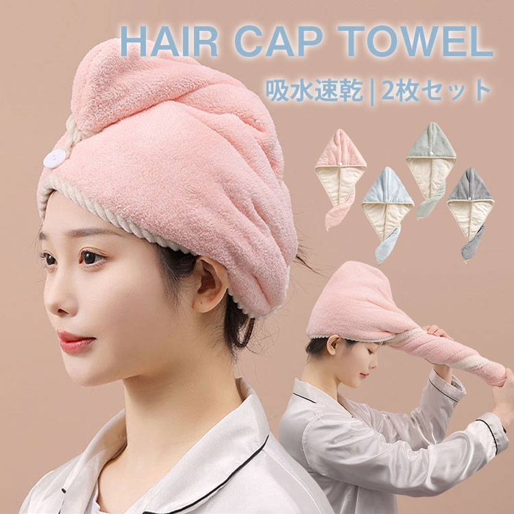 ヘアタオル ヘアキャップ 2枚セット 超吸水 速乾 ヘアドライタオル ドライキャップ タオルキャップ お風呂上がり 大人 ヘアケア 選べる4カラー 吸水タオル ヘアドライ ターバン ヘアターバン ロン