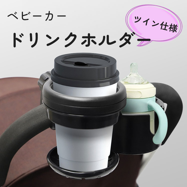ベビーカーに二つのドリンクを手軽に携帯 ツイン仕様のカップホルダーが、お出かけをより楽しいものに変えます 水分補給 車椅子 自転車 哺乳瓶 取っ手付き マグ 新作販売