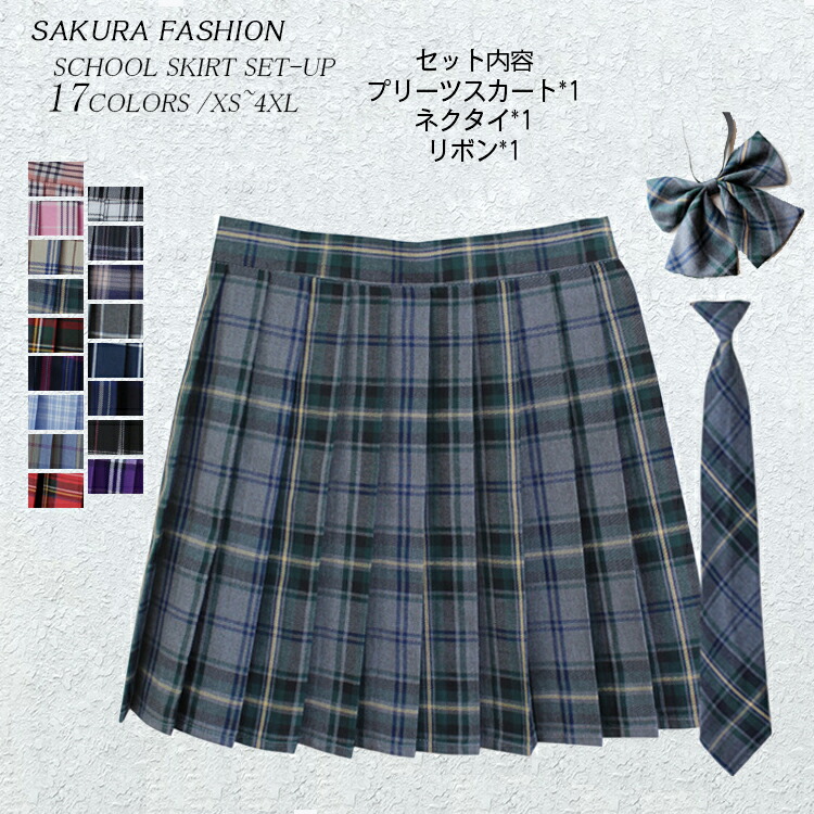 3点セット スカート ネクタイ ボウタイ 制服 スカート チェック 大きいサイズ スクールスカート プリーツスカート ギンガムチェック 学生服 女子高生 制服 コスプレ セーラー服 高校生 中学生 お