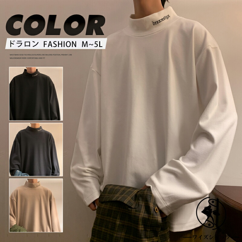 トレーナー スウェット Tシャツ 柔らかい タートルネック ドロップショルダー ハイネック 重ね着メンズファッション トップス スウェット トレーナー