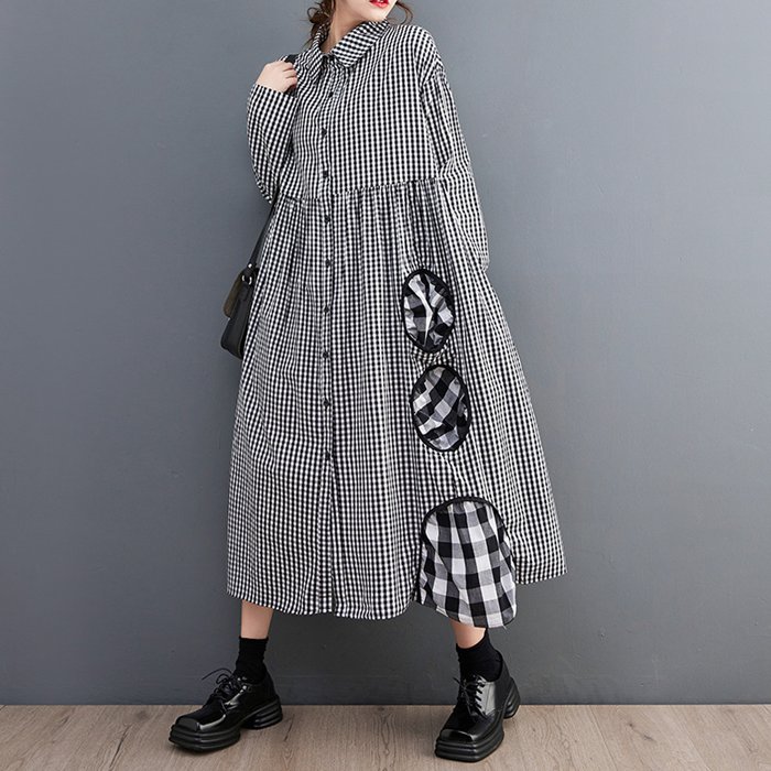 シャツワンピース ワンピース チェック柄 長袖 秋 春 切り替え ロングワンピース ロング丈 マキシ 大人 ゆったり おしゃれ きれいめ ライン 体型カバー 楽チン カジュアル 着回し