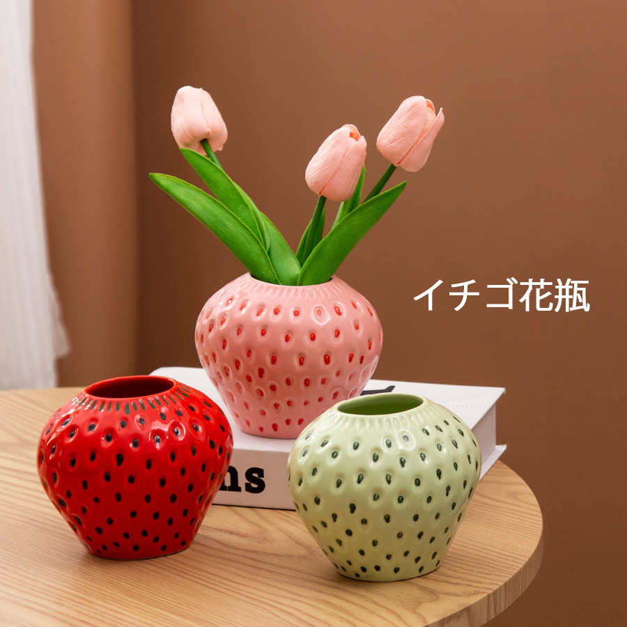 花瓶 フラワーベー イチゴ スセラミックス 陶器 花入れ おしゃれ 北欧 セラミック キャット 無地 かわいい 花びん 生花 一輪挿し ドライフラワー 花束 大きい 大型 小さい 小型 花器