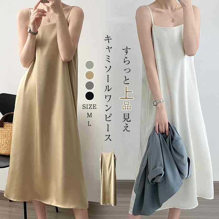 キャミワンピース レディース ロング 夏 ワンピース ロングワンピース キャミソール 春夏 キレイめ フレア キャミソールワンピース マキシ ロング丈 光沢 柔らか サテン風 20代 30代 40代