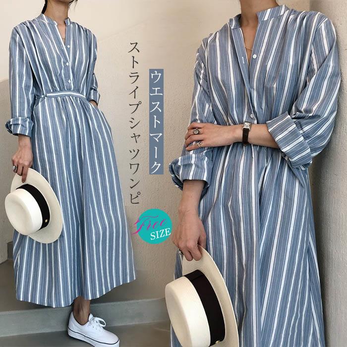 ストライプ シャツワンピース 春 ロング シャツワンピース 長袖 大きいサイズ きれいめ シャツ ワンピース 春 夏 レディース ロング丈 ゆったり ワンピース レディース フレア aライン