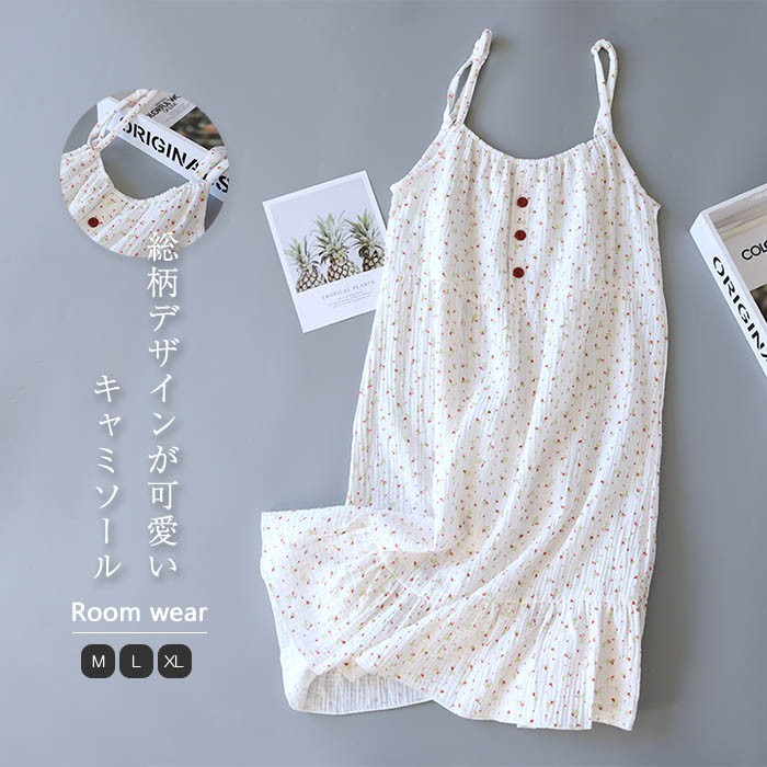ルームウェア ワンピース レディース 夏 キャミソールワンピース 綿100% 花柄 総柄 ガーゼ コットン ランジェリー 部屋着 パジャマ ナイト ノースリーブ 寝巻き