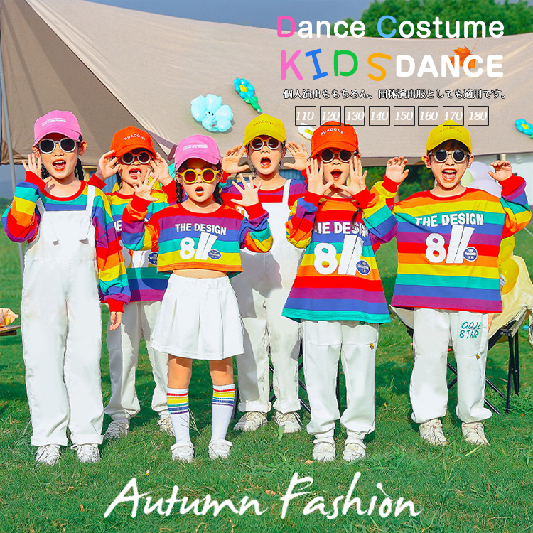 キッズダンス ダンス衣装 子供服 ヒップホップ チアダンス 応援団 衣装 幼稚園 保育園 演出 団体服 原宿系 -