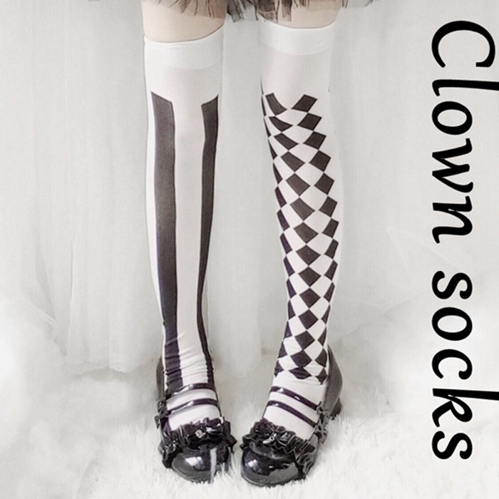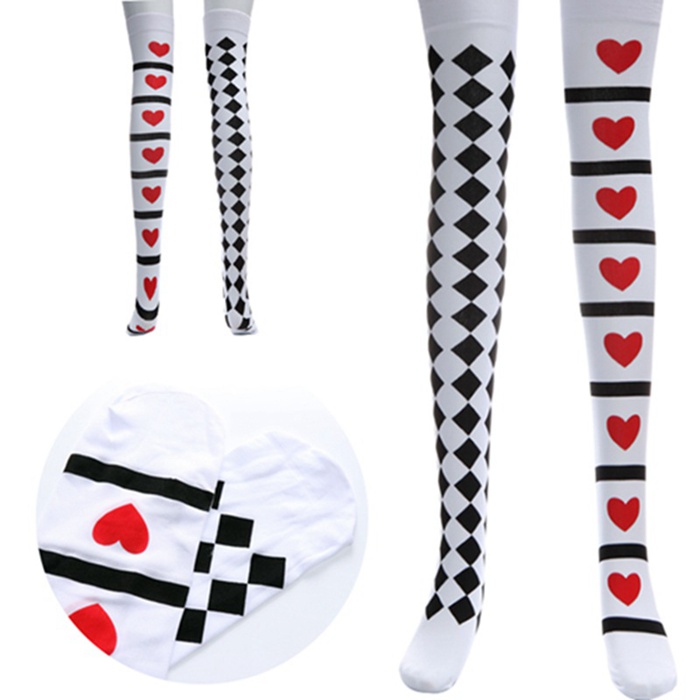 柄タイツ ハロウィン アリス コスチューム ダンス ステージ ショー 定番 人気 美脚 女性 黒 白 アシンメトリー 左右非対称