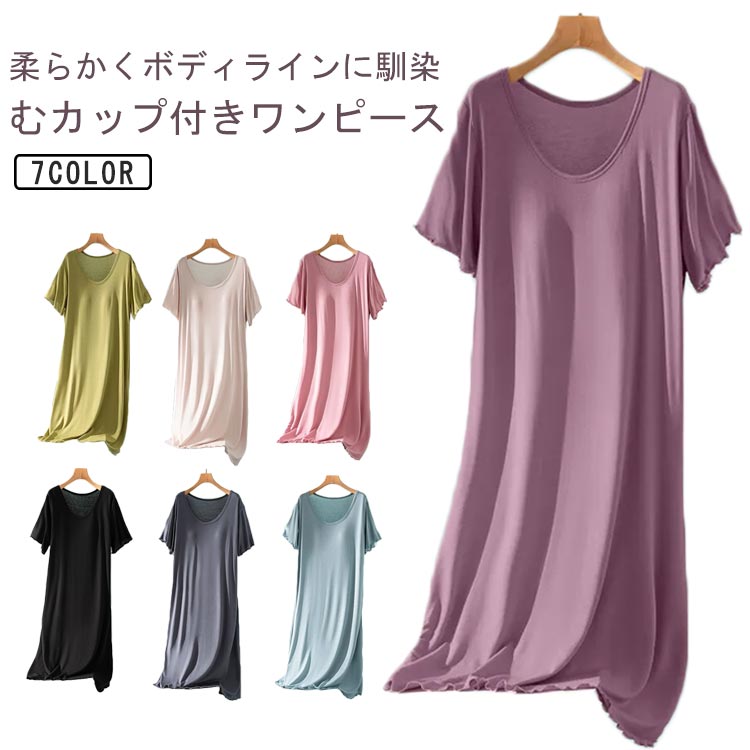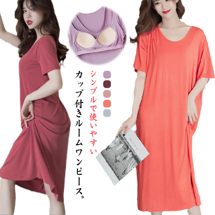 柔らかい カップ付き 半袖 ルームウェア レディース パジャマワンピ ゆったり 夏 ワンピースインナー 下着 ナイトウェア レディース ナイトウェア ルームウェア ルームウェア ワンピース