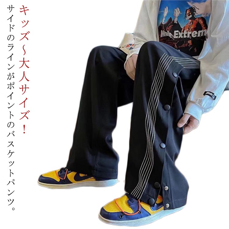 バスケットボールパンツ メンズ レディース バスケットパンツ バスパン バスケパンツ スナップボタン サイドボタン サイドライン