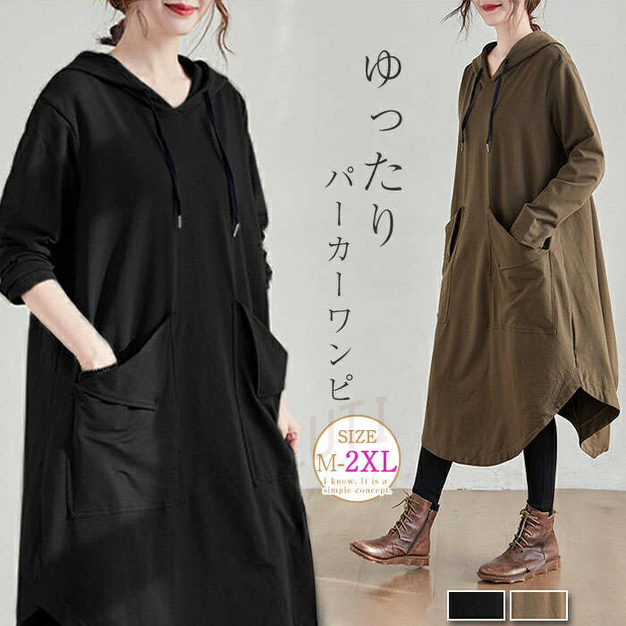 ワンピース パーカーワンピース レディース ロング丈 長袖 春 秋 フード付き ロングパーカー パーカー ワンピース 秋ワンピ ゆったり 体型カバー カジュアル マキシワンピ 大人