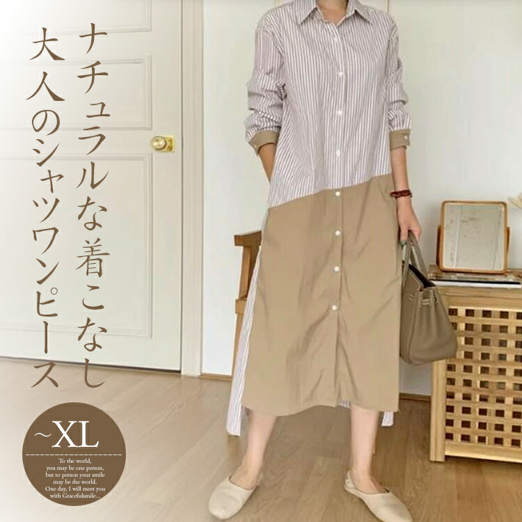 シャツ ワンピース 長袖 シャツワンピース ロング