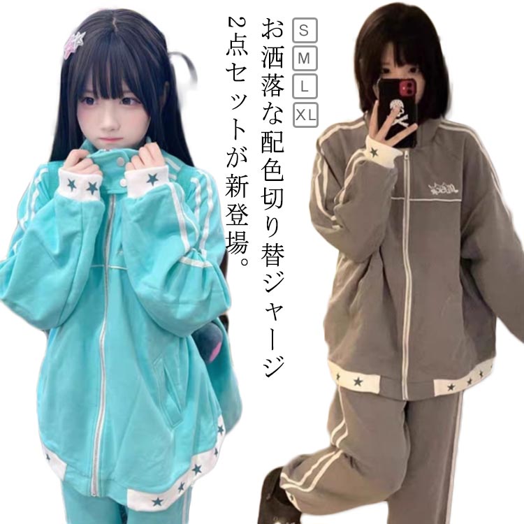 地雷系 ジャージ 上下セット レディース サブカル系 長袖 パーカー ロングパンツ 2点 セットアップ サブカル地雷 服 スポーツウェア ゆったり 春秋 ファッション